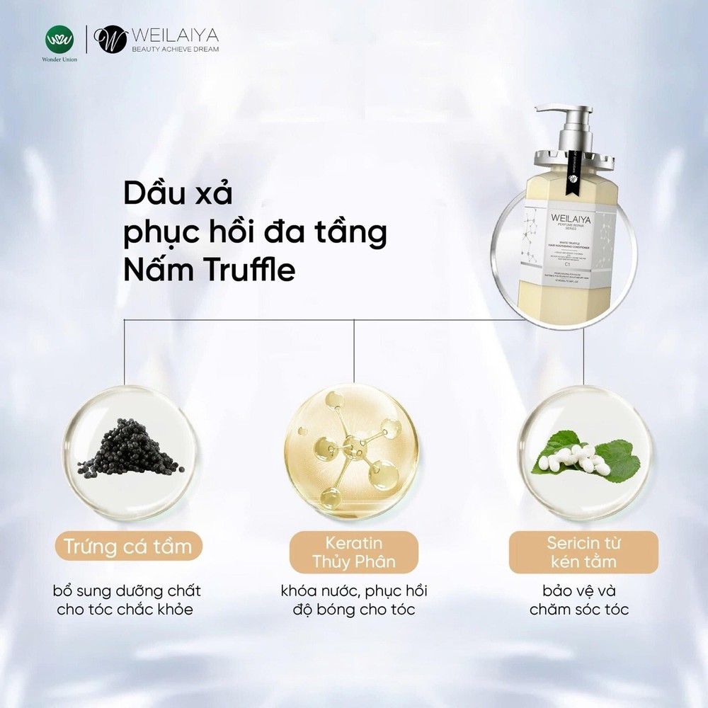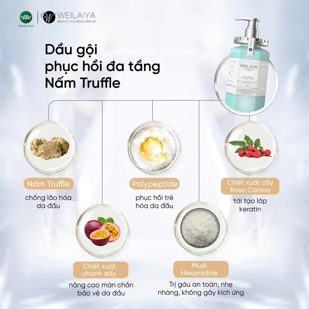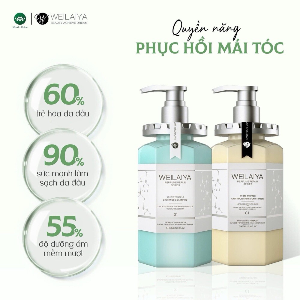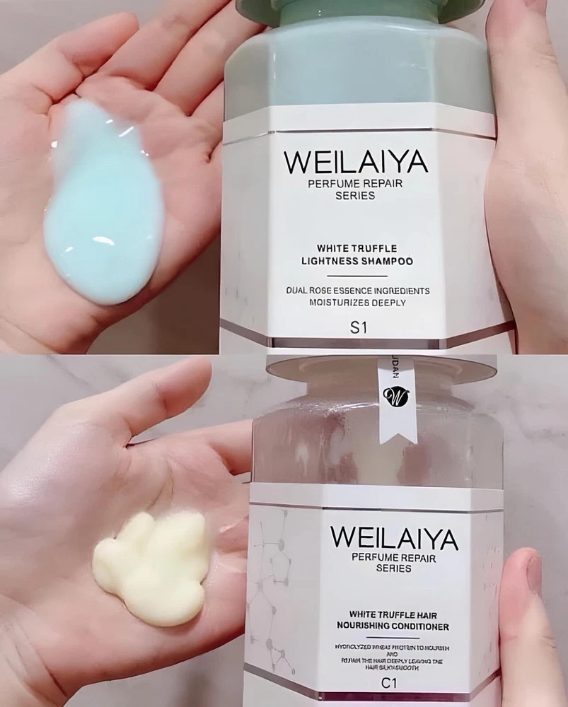 Weilaiya Ultimate Soft & Shiny Hair Routine (5 PRODUCTS) - US Seller. This bundle included 5 products: 1. Weilaiya truffle shampoo 2. Weilaiya truffle conditioner 3. Weilaiya truffle hair mask 4. Weilaiya damask rose hair oil 5. Weilaiya refreshing dry shampoo 🎀 Weilaiya Truffle Shampoo & Conditioner 450ML REVIVE" STRONG, FLOSS HAIR 💁🏻♀️ Are you worried about weak, dry, broken hair and are looking for an effective solution to revive your bouncy hair? Don't worry anymore, because Weilaiya has a perfect choice for you: 💎 Truffle Multi-layer Recovery Shampoo: is a perfect solution to restore vitality to weak hair. Containing moisturizing and regenerating ingredients, the shampoo gently cleanses without stripping away important nutrients in the hair. 💎 Truffle Multi-layer Recovery Conditioner: helps restore moisture and nutrition to the hair, making the hair softer and easier to style. 💎 Not only that, you can also use Weilaiya Serum to provide additional nutrients to the scalp to help stimulate hair growth, promote circulation to help hair follicles grow healthily With the perfect combination of regenerating hair care products, you will quickly notice a significant improvement in the health and natural beauty of your hair. 🎀 Weilaiya Multi Effect Repair High Gloss Hair Mask 450ML Weilaiya's hair steaming is a type of steaming: RESTORING HAIR STRUCTURE, RECONCILING HAIR BONDING EVERY CUSTOMER HAS TO ADMIT THAT IT IS SO ADVENTURATIVE 🫶🏻 🔺Super fast Hair steaming with super fast absorbing peptide technology, 30s to absorb hair! Steam hair in 5-10 minutes 🔺Super effective Concentrated active ingredients: Keratin, Hydrolyzed protein, Sericin silkworm cocoon, Truffle mushroom and 8 types of nourishing oils to help hair become thick, strong, super shiny and healthy. The more you steam, the more beautiful it is. 🔺Super voluminous hair Hair steaming is absolutely not sticky, on the contrary, this is a type of steaming that helps to volumize hair. 👍🏻 🔺Super Fragrant The scent of luxurious, trendy, and attractive perfume 🌸 🎀 Weilaiya Rose Essence Pure Fragrance Hair Care Oil 40ML WEILAIYA ROSE HAIR CARE Here is a multi-purpose product line, especially to help your hair always smell of perfume on hot summer days: 🔺Soften and shine hair 🔺Overcome dry, split hair 🔺Protect hair from heat and environmental effects 🔺Luxurious, seductive perfume scent 🔺Long-lasting scent up to 72 hours 🔺Does not make hair sticky 🎀 Weilaiya Refreshing Dry Shampoo 50ML -When sprayed on the head, it absorbs excess sebum immediately without leaving any residue, making the hair noticeably cleaner. Helps your hair look fresh and bouncy like it was just washed and dried at the spa I guarantee that WEILAIYA's dry shampoo is the best... 🔺NO POWDER RESINS ON HAIR 🔺HAIR IS NOT DRY AND STIFF LIKE OTHERS. 🔺FRAGRANT LIKE BRANDED PERFUME Hair roots are puffy, hair is soft and fragrant!!! Love it!!! Spray it on to create a fluffy, fixed style that's so great. You'll just be addicted 🫶