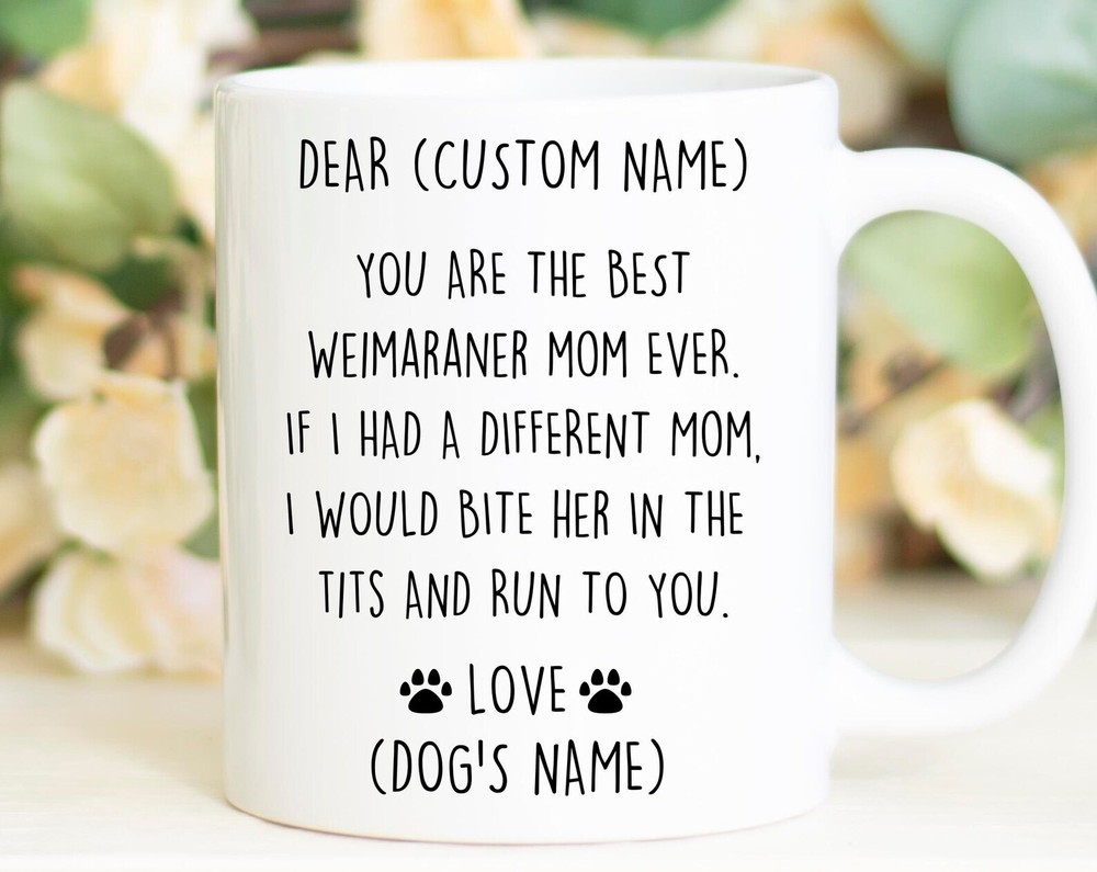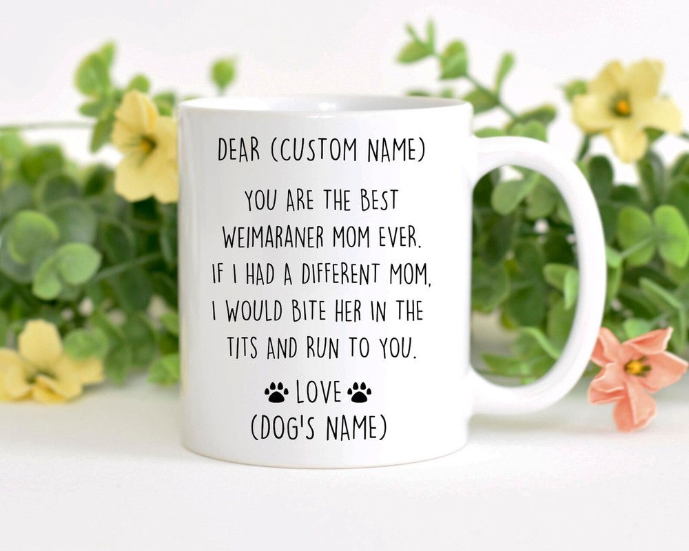 Weimaraner Mom Birthday Gift Weimaraner Mom Christmas Gift Weim Mom Valentine Gift Weim Mom Mug Weim Lover Gift Weim Mom Appreciation Product Details.. This high quality 11oz. ceramic white mug has a premium hard coat that provides crisp and vibrant color reproduction sure to last for years. Perfect for all hot & cold beverages. The highest quality printing possible is used. It will never fade no matter how many times you wash it. Material: 100% Ceramic. Print both sides. Dishwasher and Microwave Safe. High Gloss + Premium White Finish. Printed in the U.S.A. Personalized & Custom. We support personalized and custom mug to add custom, when placing an order, you can add notes to the "order note" in shipping address section. Also you can contact us directly via message. Shipping Info. Ready to ship in 1 to 2 business days, All products are made-to-order and proudly printed in the United States. Shipped by USPS and DHL, You will receive your order in 5-7 days. Replace & Refund. All products are defective during shipping broken, chipped will be replaced free of charge. You are not satisfied with the product, we will refund 100% money to you. If any other issues arise, please do not hesitate to message, we would be more than happy to assist you.