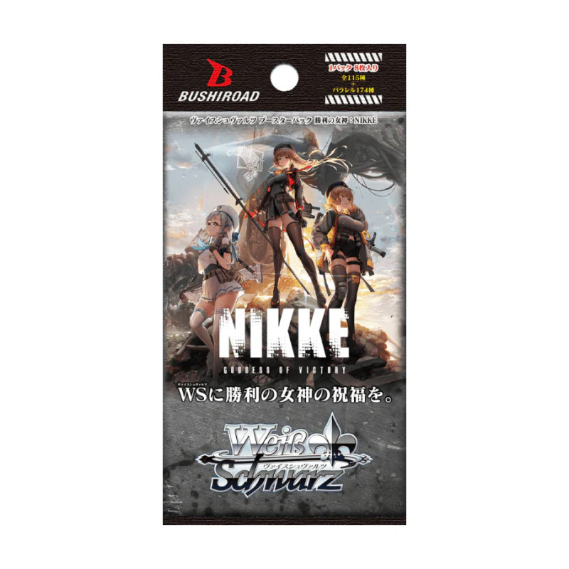 Power Up Your Collection with the Weiss Schwarz Goddess of Victory: Nikke Booster Box – 12 Packs (Japanese).Dive into strategic gameplay and stunning artwork with the Weiss Schwarz Goddess of Victory: Nikke Booster Box (Japanese Edition). Featuring 12 booster packs, this box offers fans and collectors a thrilling chance to pull powerful cards inspired by the popular mobile game. Each pack brings dynamic illustrations and unique gameplay mechanics that enhance any deck.Perfect for competitive players and collectors alike, this Japanese booster box is a must-have for anyone looking to expand their Weiss Schwarz lineup with exclusive Japanese cards and rare pulls. Unleash your inner tactician and chase the rarest Nikke cards!Features:Official Japanese Release: Includes 12 sealed booster packs straight from Japan.Stunning Art & Characters: Features illustrations and designs from Goddess of Victory: Nikke.Collectible & Competitive: Ideal for expanding decks or collecting rare cards.Great for Fans: A perfect gift for Nikke or Weiss Schwarz enthusiasts.