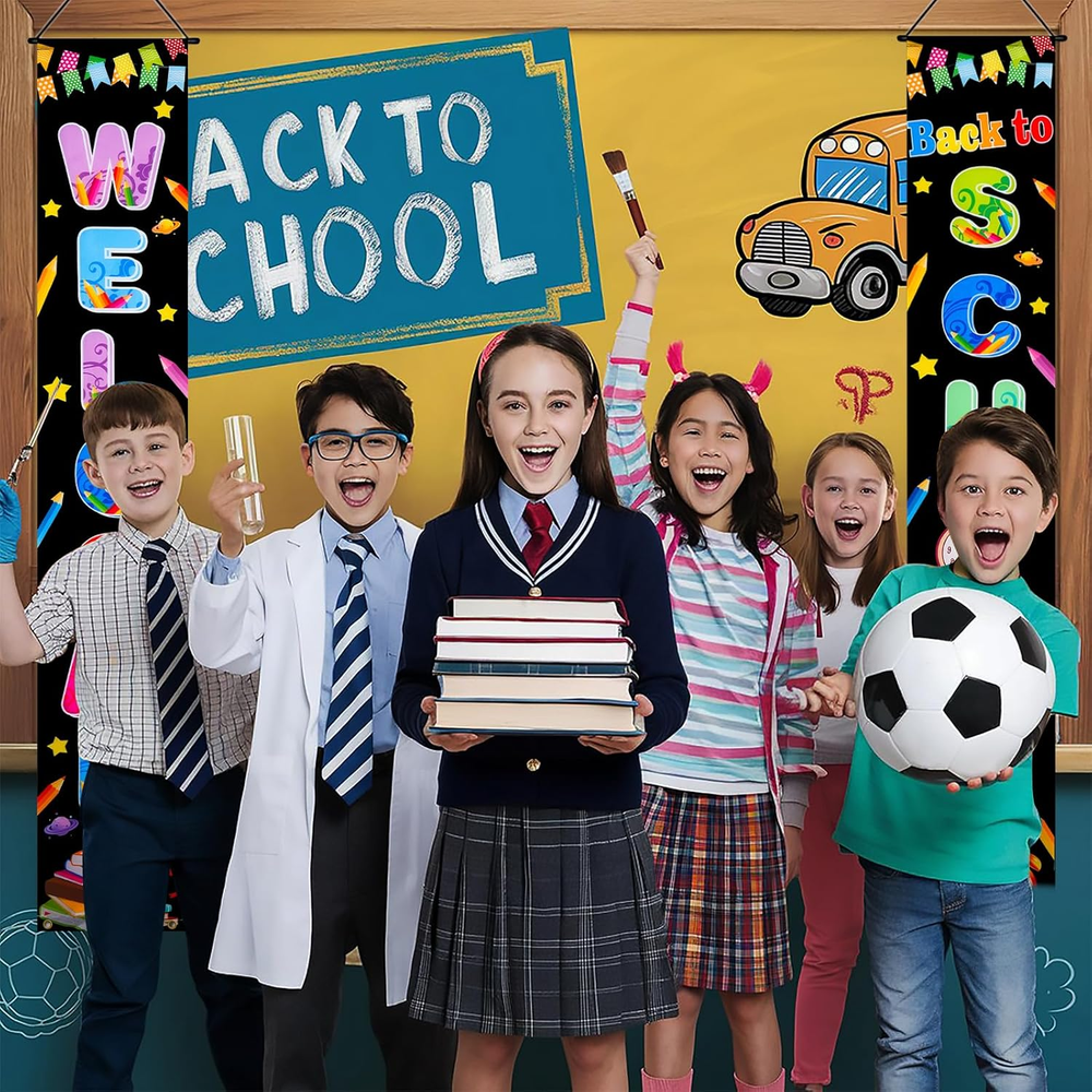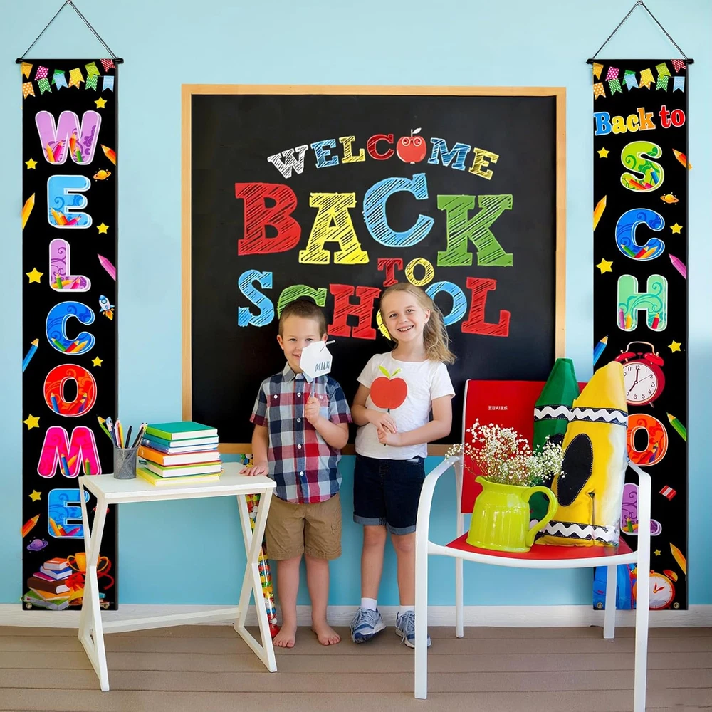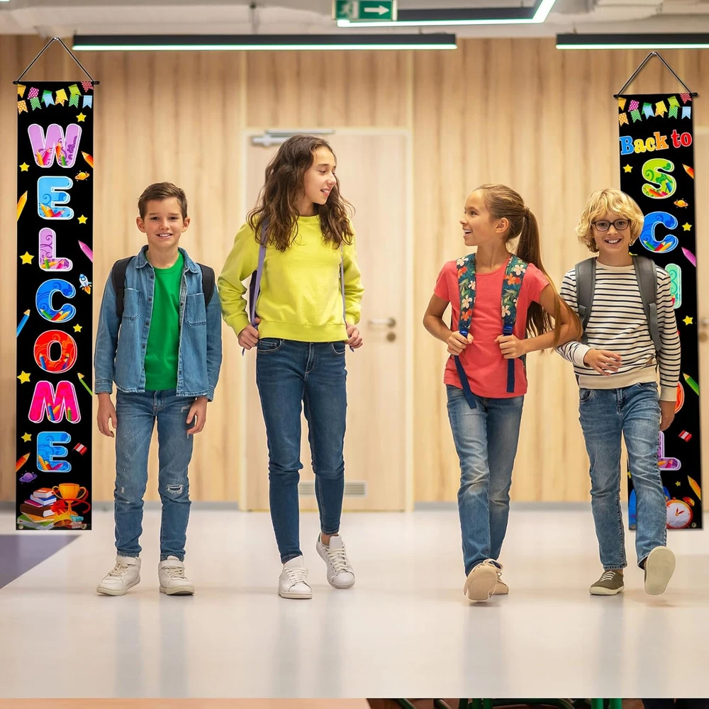 72 x 44 Inch Welcome Back to School Banner - First Day of School Hanging Banner