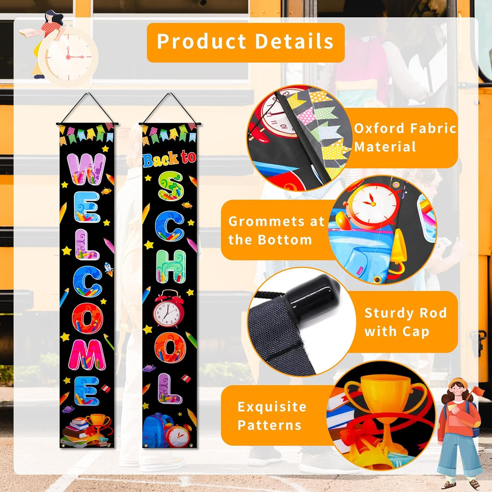 Fast Shipping On All Items 30 Days Money Guarantee Customer Support Excellent Service 100% Satisfaction Satisfaction Guaranteed Welcome Back to School Banner 11.8x70.9 inches, Back to School Door Banner Backdrop and First Day of School Hanging Fabric Banners for Pre-school Primary High School Classroom or Schoolyard Decorations Specification Item model number BTSB_01 Color Multicolor Special Feature Fade Resistant, Lightweight, Tear Resistant Product Dimensions 70.9"L x 11.8"W Material Polyester Specific Uses For Product Indoor, Outdoor Item Weight 3.52 ounces Theme Back to School Theme Occasion Back to School Target Audience Children Included Components 1 set x Banner 11.8 "w x 70.9 "w. Weight: 3.52 oz Item Description Welcome Back to School Banner Decorations: There are one 11.8 x 70.9 inch "WELCOME" banner and one "Back to SCHOOL" banner, perfect for back to school season as a welcoming banner for classroom door decorations or school gate decorations Exquisite Back to School Themed Design: These first day of school banner are printed with pencil, books, school bags, alarm clock, award cups ect. with vibrant colors and will not fade easily, the exquisite designs make it more eye-catching and add a touch for the first day of school decoration Durable Material: This back to school banner is made of 100D polyester fabrics, which is thick, waterproof, weather-resistant and durable enough for the long-time use, ideal for outdoor or indoor decorations and photo props background for the teachers and students Easy and Convenient: These welcome back to school banners are already assembled, you just need to hang them to the door of classroom or gate of schoolyard. They come with durable plastic ropes, and there are 2 metal grommets at the bottom on each banner, you can use the string to pass through the grommets and tie it on wall or door so they won't be blown away or get twisted even in the stormy weather outdoor, more stable and durable Wide Occasions: These school door banners are wonderful decorations for back to school party, first day of school party decorations, classroom decorations, school hallway decorations, school gate decoration and so on. The welcome back to school themed banner decorations will create a joyful atmosphere and good starting of the new school year in the back to school season Welcome Back to School Banner 11.8x70.9 inches, Back to School Door Banner Backdrop and First Day of School Hanging Fabric Banners for Pre-school Primary High School Classroom or Schoolyard Decorations About us We offer the best prices around on high quality products. Our E-store includes media such as books, movies, music and games while offering electronics, toys, sporting apparel, clothing, tools, general home, garden items and more. Shipping We are always working hard to ensure your package arrives as soon as possible. Please understand that some factors like weather, high postal traffic, and the performance of shipping companies are outside of our control. We offer free shipping to the lower 48 states and ship within 2-3 business days of payment, usually sooner. We do not accept P.O. Boxes. Please provide a physical address. For shipping outside of the continental USA, we only use eBay's Global Shipping Program.The item is shipped to KY and then sent to the rest of the world. International customers are responsible for all duties and taxes. Continue to check out to calculate costs for shipping the item to your country. Messages regarding eBay's Global Shipping Program MUST be directed at eBay EXCLUSIVELY. Returns We offer a 30-Day Return Policy on items in which you are not completely satisfied with. You have the option of a full-refund or an exchange of the item. No returns are available on items shipped outside of the USA Satisfaction We try over very best to make sure every customer is completely satisfied. If there's a problem, message us! We're happy to help. Payment Options Shop With Confidence