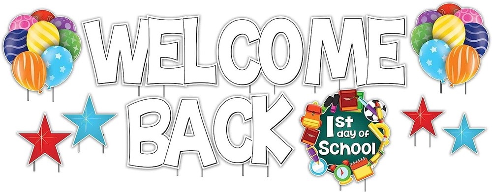 About this item Greet your students back to school with our welcome back to school waterproof yard card set. FILLERS: This set is perfect for adding between layers of yard letter text to hide stakes. STURDY METAL STAKES: This set includes 24 sturdy metal stakes. Use 2 stakes per sign cutout. SCHOOL DECOR: The quality color graphics make a happy first day of school celebration MADE IN USA – Order these and other festive products made by a family business in Davenport, IA