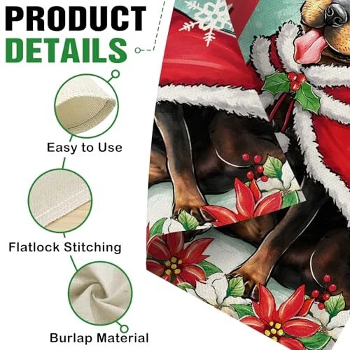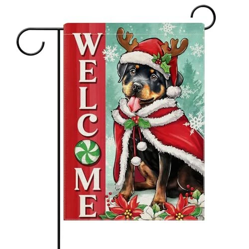 30 Days Return Policy Fast Delivery Trusted seller Welcome Christmas Rottweiler Dog Decorative Garden Flag, Xmas Pet Yard Outside Home Decorations Dog Lover Gifts, Peppermint Candy Holiday Burlap Outdoor Small Decor Double Sided 12 x 18 Product Description Durable Flag -- Material: 100% burlap. Weatherproof and non-fray durability, home garden's durable indoor, outdoor art flags and banners are made of machine washable polyester burlap material, fade resistant to keep them flying for many seasons Garden Flag Size -- This vertical garden flag is the small, mini Garden size (12-12.5 x 18"). Flag pole not included Produced in Higher Quality -- The Christmas garden flags with puppy, peppermint candy, poinsettia, snowflake patterns are printed in premium colorfast permanent dye to create colorful, vibrant, bright designs from creative, original artwork Home Farmhouse Décor -- Since 1999, has been producing premium quality flags that can be perfect gifts for your loved ones and make charming decorative statements for any deck, patio, mailbox, porch or veranda, any backyard, lawn or garden Double Sided Flag -- Design is double sided with the image printed and visible from both sides and text also reads correctly from both sides. Artistic sign flags hang beautifully from a sewn-in sleeve and it's easy to switch out our seasonal flag designs using standard line of flag poles, flag pole bracket, stands, arbors, and hangers Shipping Returns Payment Shipping Shipping is FREE to all addresses other than APO/PO boxes in the lower 48 states. All our stock ships from US-based warehouses. Shipped via USPS or UPS (depending on location and package weight) Unless stated otherwise, all orders will ship within 24-72 hours of your payment being processed. Check our feedback to see the great reviews of FAST shipping we offer. Returns As our valued customer, we will do our best to make sure the product you receive arrives to you on time and as expected. If you are not satisfied with your purchase, please contact us within 30 days of receiving your order to process a return. Payment We currently accept payment via eBay managed payments only. Once payment is cleared, we will dispatch your shipment within 1-3 business days. Please refer to the "Shipping" tab for more information regarding shipping speed to your destination.
