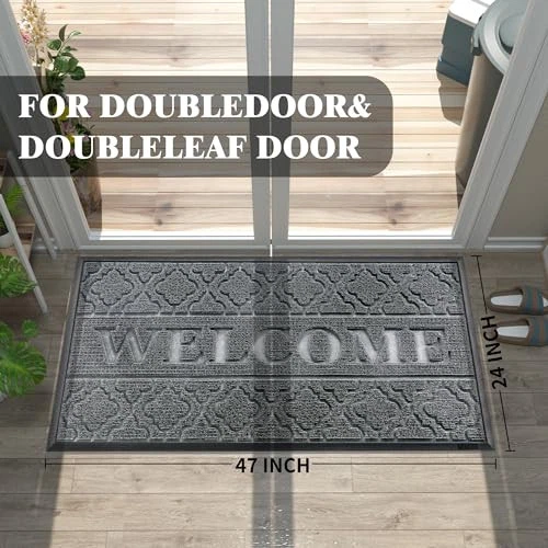 Return Policy Fast Delivery Trusted seller Welcome Mat Outdoor Indoor, 47x24 All-Season Waterproof Front Door Mat, All-Weather Heavy Duty Doormat, Low Profile Porch Patio Entrance Mat, Non Slip Outside Mat, Dark Grey Product Description 【Groove Pattern Design】:The surface of the doormat features a distinctive groove pattern with the "WELCOME" lettering, making it unique and eye-catching. It instantly adds a friendly and warm touch to your doorstep.The outdoor door mat features environmentally friendly polypropylene material with a patterned groove design that effectively captures and retains dirt, dust, and sand of the sole 【Non Slip Rubber Backing】: heavy-duty outdoor doormat features a natural rubber non-slip backing that provides a secure grip, tightly adhering to the floor and delivering excellent anti-slip performance. Whether it's a smooth floor, tiles, or wooden flooring, it effectively prevents the doormat from sliding. The reinforced thick rubber border around the edges enhances stability, so you don't have to worry about slipping even with sudden impacts 【Rugged and Sturdy】:The front welcome doormat is crafted using a unique hot-melt planting production process, providing it with higher tensile strength and tear resistance. It can withstand various weather conditions, including sunlight, rain, and snow 【Easy to Clean】:Cleaning your outdoor doormat has never been easier. Simply use a broom or an outdoor brush to quickly sweep away surface dust and debris. For stubborn stains or ingrained dirt, our doormat can be easily deep cleaned using a high-pressure washer, restoring its shine and freshness. No matter the type of dirt, our doormat can quickly regain a clean and pristine condition, providing your home with a comfortable and clean entrance 【Wide Use】: versatile door mats outdoor are stylish and practical, suitable for indoor use to keep the floors of homes, living spaces, lobbies and offices clean, or outdoor use in front doors, sidewalks, terraces, garages, barns, driveways and many others busy areas; Heavy and sturdy materials, soft and flexible; Simple and stylish design complements any decoration Shipping Returns Payment Shipping Shipping is FREE to all addresses other than APO/PO boxes in the lower 48 states. All our stock ships from US-based warehouses. Shipped via USPS or UPS (depending on location and package weight) Unless stated otherwise, all orders will ship within 24-72 hours of your payment being processed. Check our feedback to see the great reviews of FAST shipping we offer. Returns Seller does not accept returns Payment We currently accept payment via eBay managed payments only. Once payment is cleared, we will dispatch your shipment within 1-3 business days. Please refer to the "Shipping" tab for more information regarding shipping speed to your destination.