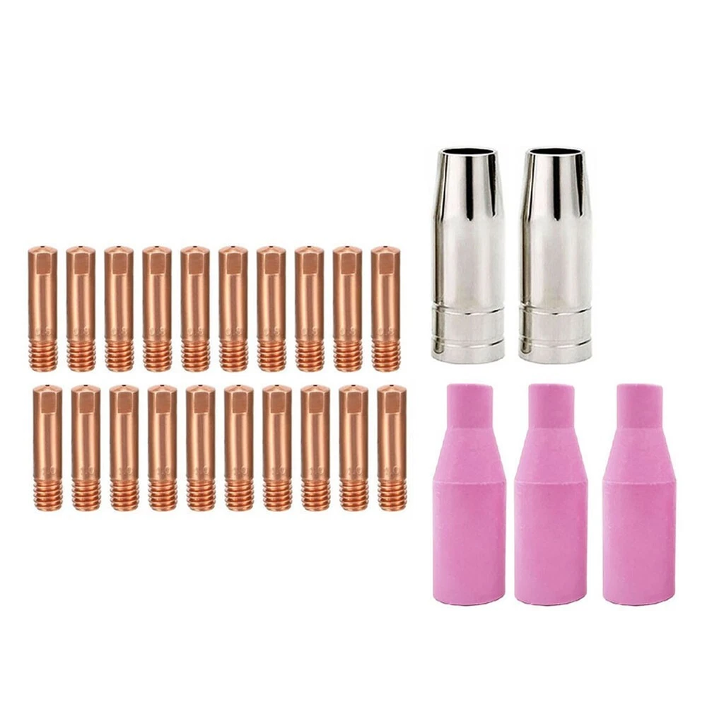 Welding Torch Component Set 25PCS Compatible with For MIG For MB15 AK15 DESCRIPTION Features: *Compatibility: This product is designed to be compatible for MIG for MAG welding torches for AK15, for MB15, and for 14AK, as well as for HITBOX welding machines including for MIG200, for MIG250, for MT2000, and for HBM1200. *Quality Materials: The torch accessory is constructed from good-quality metal and copper, providing excellent heat resistance for long-lasting use. *Easy Installation: The components can be easily assembled on the burner without the need for special tools, making installation straightforward, convenient, and quick for users. *Good Components: The accessories offer outstanding thermal properties, with high temperature resistance. Their strong texture ensures a long service life, effectively meeting work demands and facilitating smoother operations. *Package Contents: The package includes 10 contact tips (0.8mm/ 0.030"), 10 contact tips (1.0mm/0.039"), 2 gas nozzles, and 3 earthenware nozzles, providing a comprehensive set of tools for various welding applications. Specifications: Part Name: Welding Torch Nozzles Kit Material: Metal,Earthenware Size: Standard Color: Pink,Silver,Copper Package Content: 10 x contact tips (0.8mm/ 0.030") 10 x contact tips (1.0mm/0.039") 2 x gas nozzles 3 x earthenware nozzles Note: 1. The real color of the item may be slightly different from the pictures shown on website caused by many factors such as brightness of your monitor and light brightness. 2. Please allow slight manual measurement deviation for the data. POLICES Shipping Payment WARRANTY We only ship to confirmed ebay Order addresses. Please comfirm that your Order address is in line with your shipping address. Please kindly note that the c ombined shipping is not provided because the shipping fee is calculated by weight. Also, the each additional item means exactly the the same color and size. It takes about 7 -15 working days to US; about 10-30 working days to other countries. Transit time may be a little delayed because of the bad weather and customs inspection . If you do not receive your item within 30 working days since payment finished, please contact us immediately for further assistance. Payment must be completed within 5 days. If you have any problems about payment, please contact us via ebay message. We strive for 100% customer satisfaction! Positive Feedback is very important to us. If you have any questions, p lease feel free to contact us via "Ask seller a question" . We will reply your email within 24 working hours.