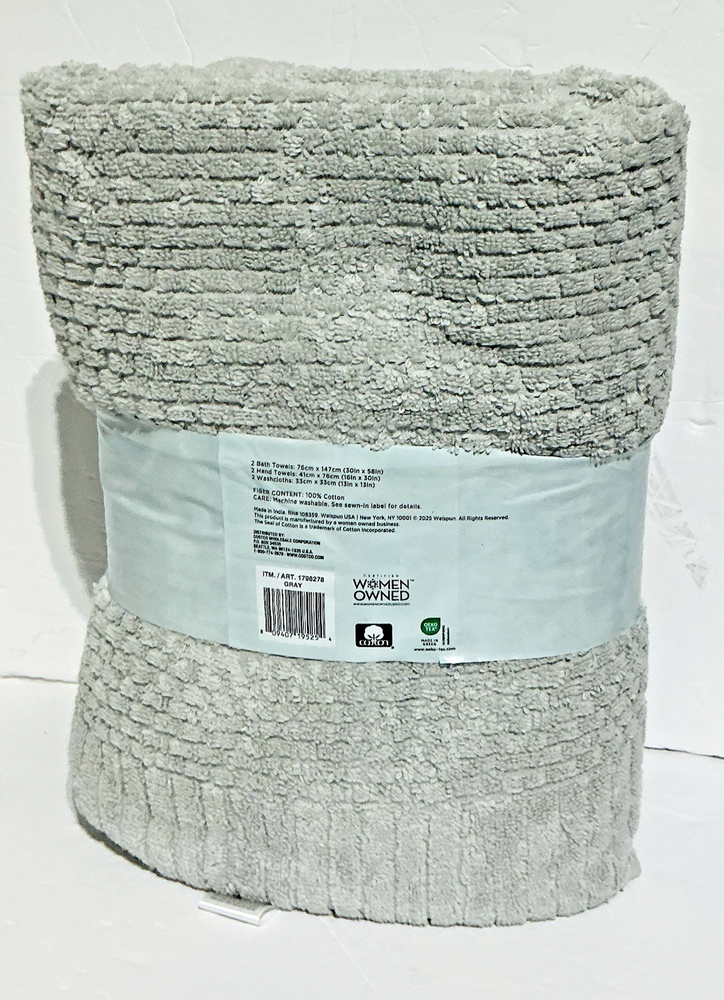 Welhome 100% Cotton 6 Piece Towel Set Gray- new free shipping The Welhome 100% Cotton 6 Piece Towel Set in gray features a solid rectangular shape, perfect for adult use in the bathroom. This luxury towel set includes a washcloth, hand towel, and bath towel, all made from soft and textured cotton fabric for ultimate comfort. Machine washable for easy care, this set is ideal for adding a touch of elegance to your home decor. Made in India by the brand Welhome, this towel set is a practical and stylish addition to any bathroom.