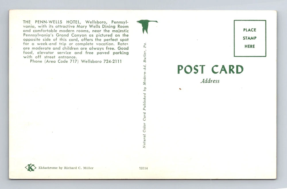 Wellsboro PA-Pennsylvania, Penn Wells Hotel, Mary Wells Dining Vintage Postcard
