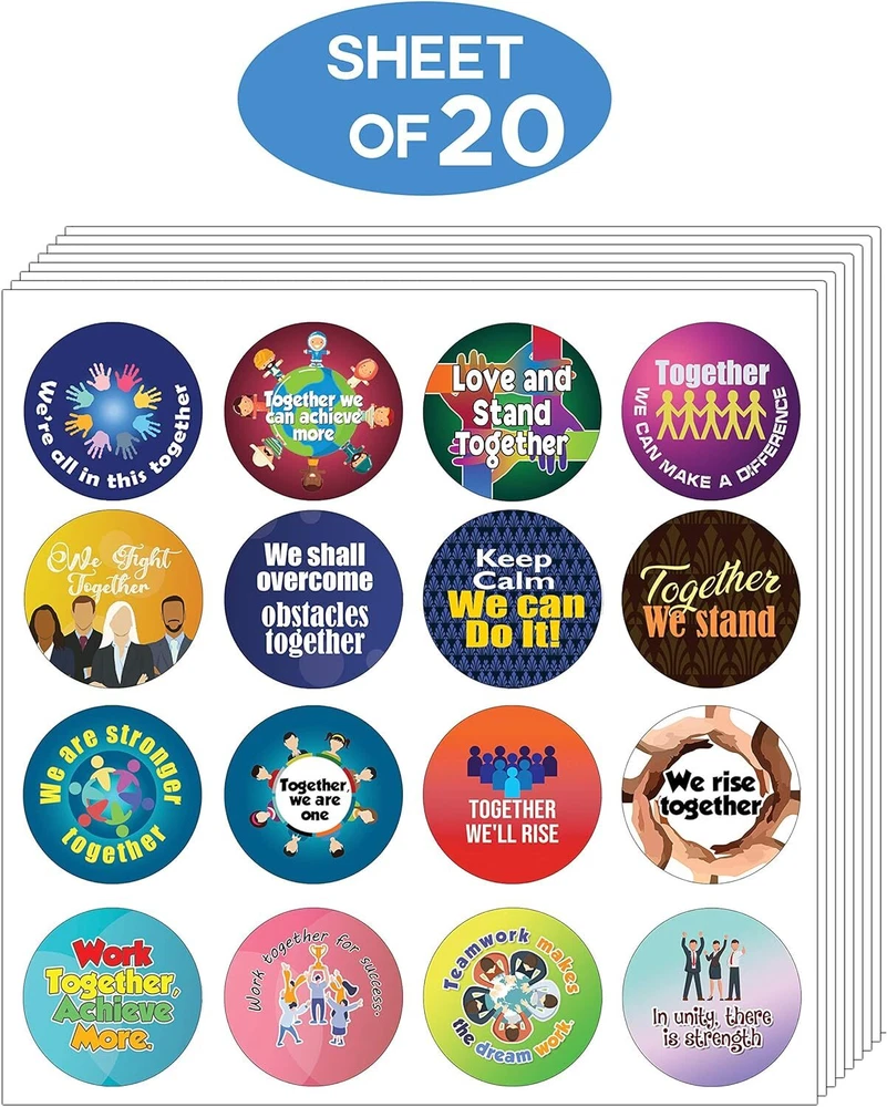 16 UNIQUE DESIGNS INSPIRING STICKERS FOR YOUR DIY PERSONALIZED DECORATIONS - These colorful and uniquely inspiring round shaped stickers are the best tool for DIY decoration and personalization of your belongings. GREAT STOCKING STUFFERS, SCHOOL CORPORATE TEACHING SUPPLEMENTARY MATERIALS, AND INCENTIVE GIFTS - Great rewards giveaways for Boys Girls, Kids, Teens, Children, Adults, Professionals. A perfect design to give during guidance sessions, classroom activities, school giveaways, birthdays, anniversaries, family day, and any other special occasions. MADE WITH DURABLE AND WATERPROOF MATERIALS - There is a lamination or coating to make the stickers high water resistant, and WILL NOT fade from the water. The stickers can stick it anywhere you like, and it sticks there and lasts a long time. A COLORFUL AND DECOR STICKER DECAL - Each sheet with 16 individual round stickers. There are 20 Sheets, with a total of 320 pieces of stickers. STICKER SIZE: 1.5 INCHES IN DIAMETER Finding a way to say thank you with an effort? Creanoso We’re All In This Together Gift Giveaways Stickers for Kids and Teens is all you need. Strong and sturdy premium quality gift sticker sheet for all events and occasions. Also worrying about finding a good quality incentive rewards merit stickers to give to your children or to your students? Well, worry no more, Creanoso We’re All In This Together Stickers is here just for the occasion. Great gifts for kids, boys, girls, children and students.This set contains sixteen 1.5inch in diameter round shaped stickers with 16 designs of saying thank you. Perfect for any special events and occasions. Paste it anywhere you like and it sticks. Give this to your friends, families, teachers, educators and visitors and surely they would love it for their children. Grab one now and encourage yourself to get these perfect set of cute and stylish gift Stickers brought to you by Creanoso