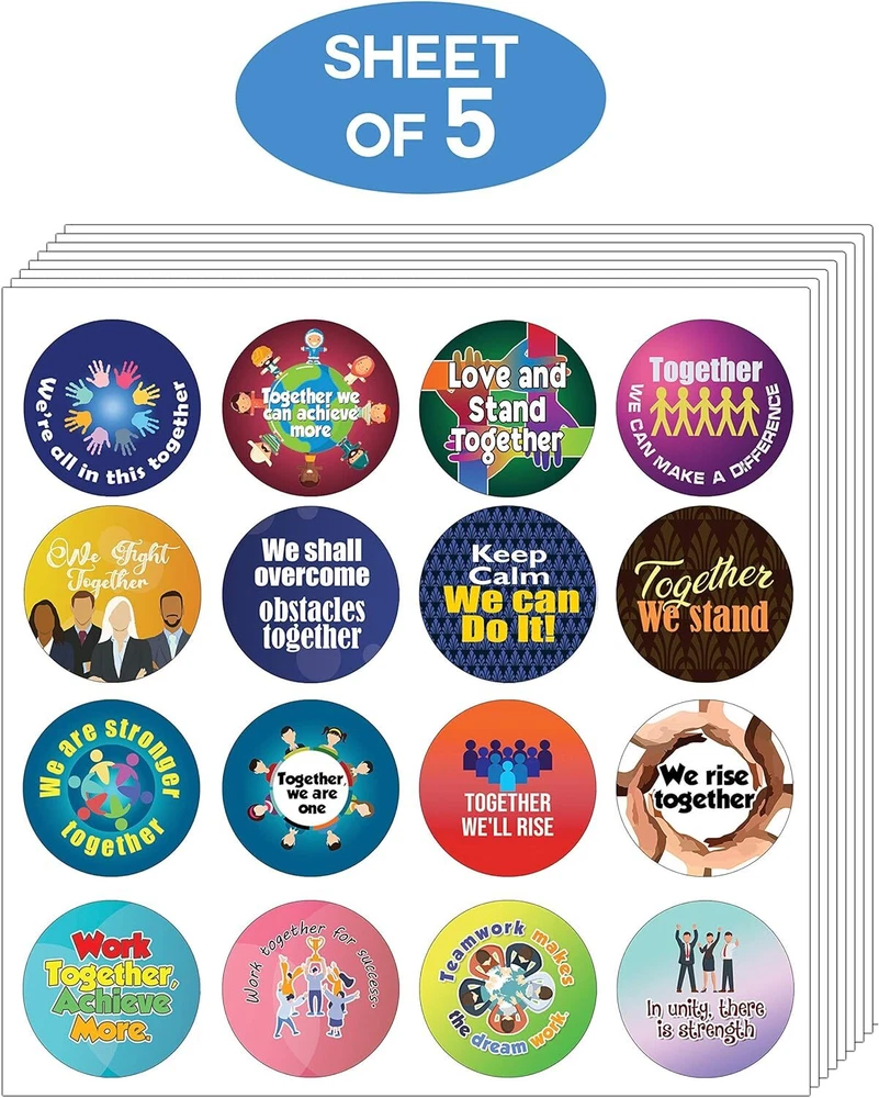 16 UNIQUE DESIGNS INSPIRING STICKERS FOR YOUR DIY PERSONALIZED DECORATIONS - These colorful and uniquely inspiring round shaped stickers are the best tool for DIY decoration and personalization of your belongings. GREAT STOCKING STUFFERS, SCHOOL CORPORATE TEACHING SUPPLEMENTARY MATERIALS, AND INCENTIVE GIFTS - Great rewards giveaways for Boys Girls, Kids, Teens, Children, Adults, Professionals. A perfect design to give during guidance sessions, classroom activities, school giveaways, birthdays, anniversaries, family day, and any other special occasions. MADE WITH DURABLE AND WATERPROOF MATERIALS - There is a lamination or coating to make the stickers high water resistant, and WILL NOT fade from the water. The stickers can stick it anywhere you like, and it sticks there and lasts a long time. A COLORFUL AND DECOR STICKER DECAL - Each sheet with 16 individual round stickers. There are 5 Sheets, with a total of 80 pieces of stickers. STICKER SIZE: 1.5 INCHES IN DIAMETER Finding a way to say thank you with an effort? Creanoso We’re All In This Together Gift Giveaways Stickers for Kids and Teens is all you need. Strong and sturdy premium quality gift sticker sheet for all events and occasions. Also worrying about finding a good quality incentive rewards merit stickers to give to your children or to your students? Well, worry no more, Creanoso We’re All In This Together Stickers is here just for the occasion. Great gifts for kids, boys, girls, children and students.This set contains sixteen 1.5inch in diameter round shaped stickers with 16 designs of saying thank you. Perfect for any special events and occasions. Paste it anywhere you like and it sticks. Give this to your friends, families, teachers, educators and visitors and surely they would love it for their children. Grab one now and encourage yourself to get these perfect set of cute and stylish gift Stickers brought to you by Creanoso