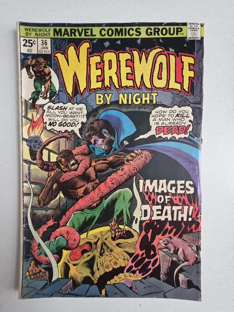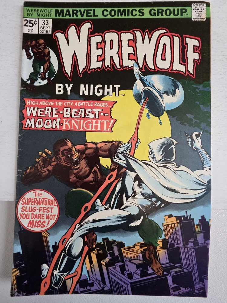 This product is a mixed lot of 17 Bronze Age comic books from the series "Werewolf By Night," featuring issues #2 to #40. Released in 1973 by Marvel Comics, these vintage comics showcase the character of Jack Rusell (Werewolf) in the Marvel Universe. With artwork by Mike Ploog and stories by Gerry Conway, Doug Moench, and Don Perlin, these first printing comics also include 11 MARK JEWELERS inserts and the 2nd appearance of Moon Knight. This lot is a valuable addition to any comic book collection, especially for fans of superhero and US Comics from the 1970s era. *Includes ALL MVS' Intact #2 FN/VF #9 VG+ #12 VG+ MARK JEWELERS INSERT stains bk #17 VG+ MARK JEWELERS INSERT stains bk #18 VG+ #23 VF- MVS SILVER SURFER #24 FN- MVS CAPTAIN AMERICA #25 VG+ MARK JEWELERS INS MVS Namor #26 VG- MARK JEWELERS INS MVS Hawkeye #27 VG- MARK JEWELERS INS MVS Cap Mar #29 VG- MARK JEWELERS INSERT #30 VG MARK JEWELERS INSERT Part cut #31 VG- MARK JEWELERS INSERT #33 FN+ MOON KNIGHT 2ND APPEARANCE #34 VG- MARK JEWELERS INSERT #36 VG+ MARK JEWELERS INSERT #40 VG MARK JEWELERS INSERT stains bk - Bagged and boarded - Shipped with Gemini packing to insure no damage during shipping - Usps Priority & insured Check out other issues and 1000s of other comics in in store We combine shipping