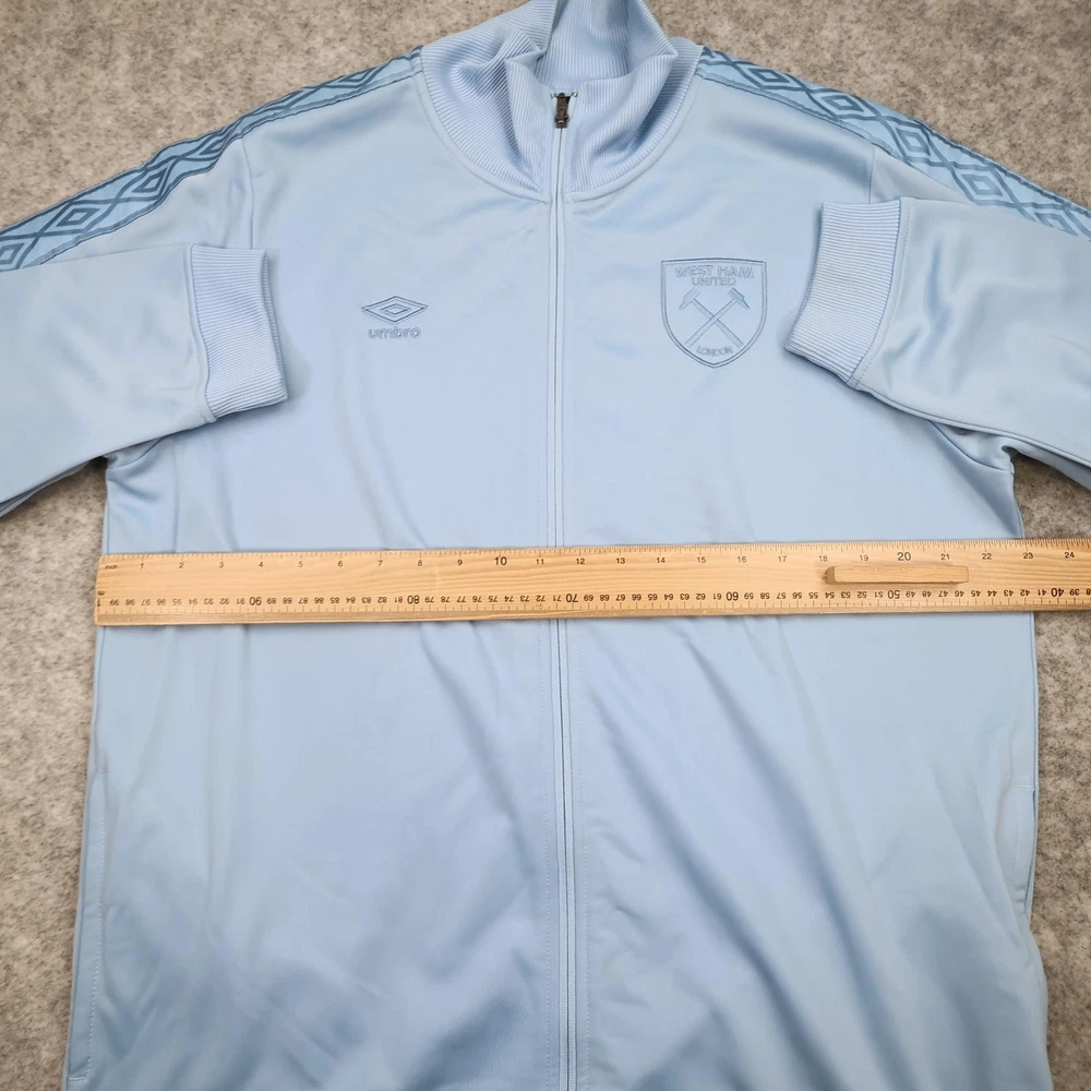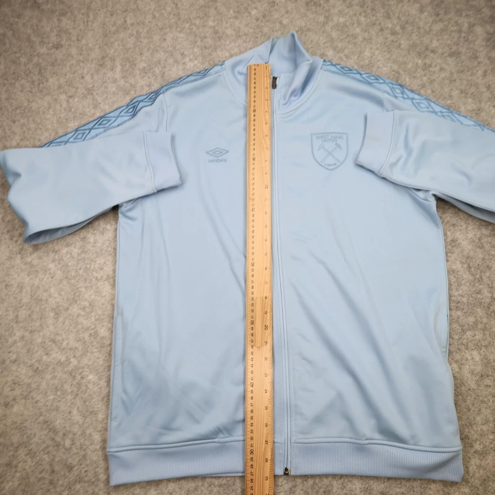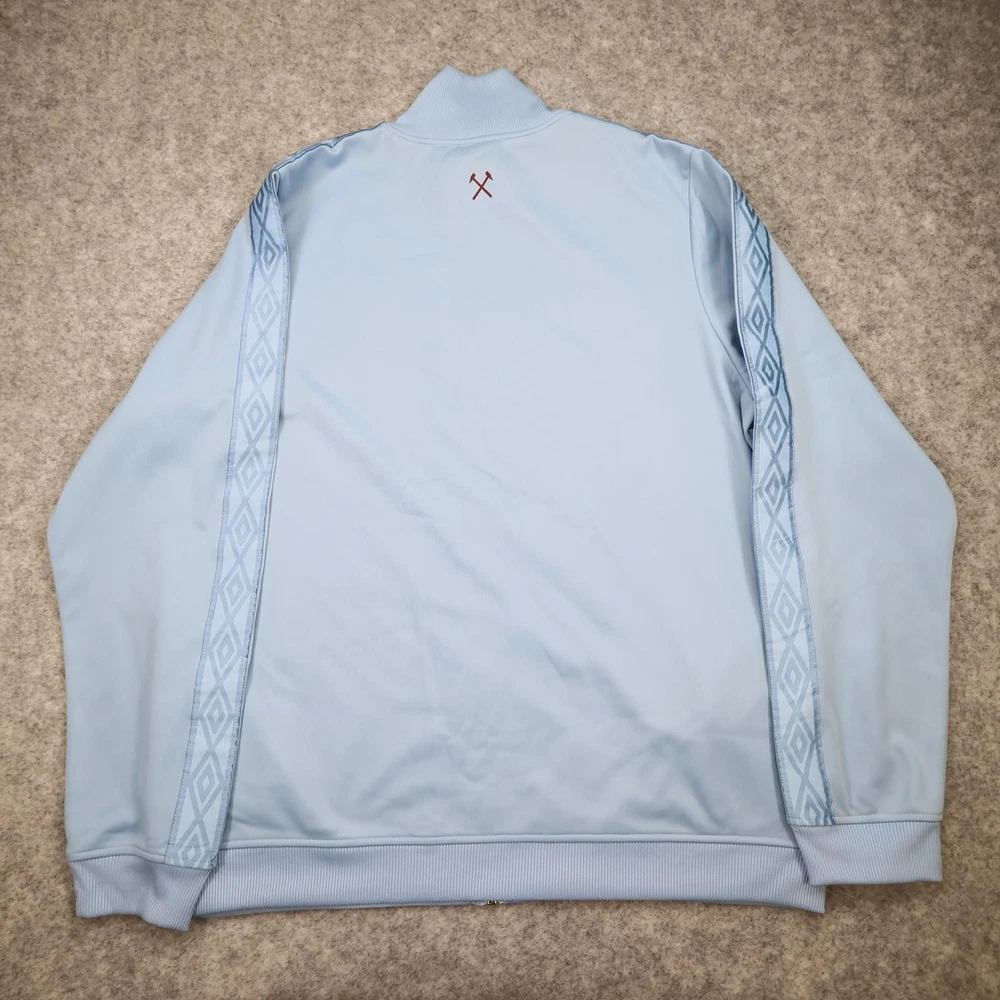 Pre-owned West Ham United Umbro jacket with light general wear from use and storage. Fabric, lining and embroidered details are clean and intact with no stains, holes or damage. Zip, cuffs, hem and seams are in good shape, and club crest and Umbro logos remain sharp.
