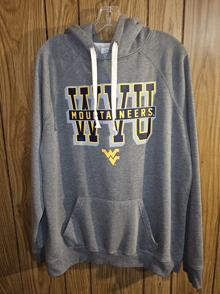 Show your support for the West Virginia Mountaineers with this officially licensed XL women's gray graphic logo hoodie. Perfect for football season, this sweatshirt features the team's logo and is made by Captivating Apparel. It is made in China and is ideal for regular season games. This sweatshirt is a great addition to any fan's collection and is perfect for showing off your team spirit. It is available in size XL and is designed specifically for women. Get ready to cheer on the West Virginia Mountaineers in style with this NCAA licensed hoodie.