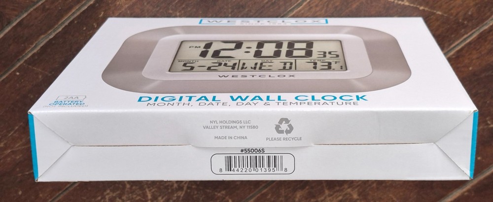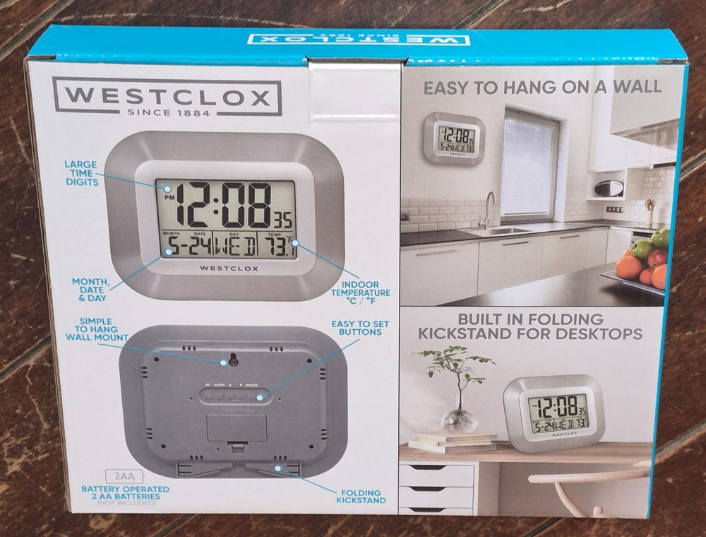 Westclox *Silver* Digital Wall Clock Month Date Day & Temperature #55006S