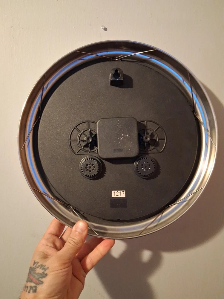 Power Source: Battery Powered UPC: 844220004215 MPN: 49832 gtin13: 844220004215 Style: Classic Features: Thermometer Display Type: Analog Color: Silver Brand: Westclox Material: Metal Type: Hanging Wall Clock Shape: Round