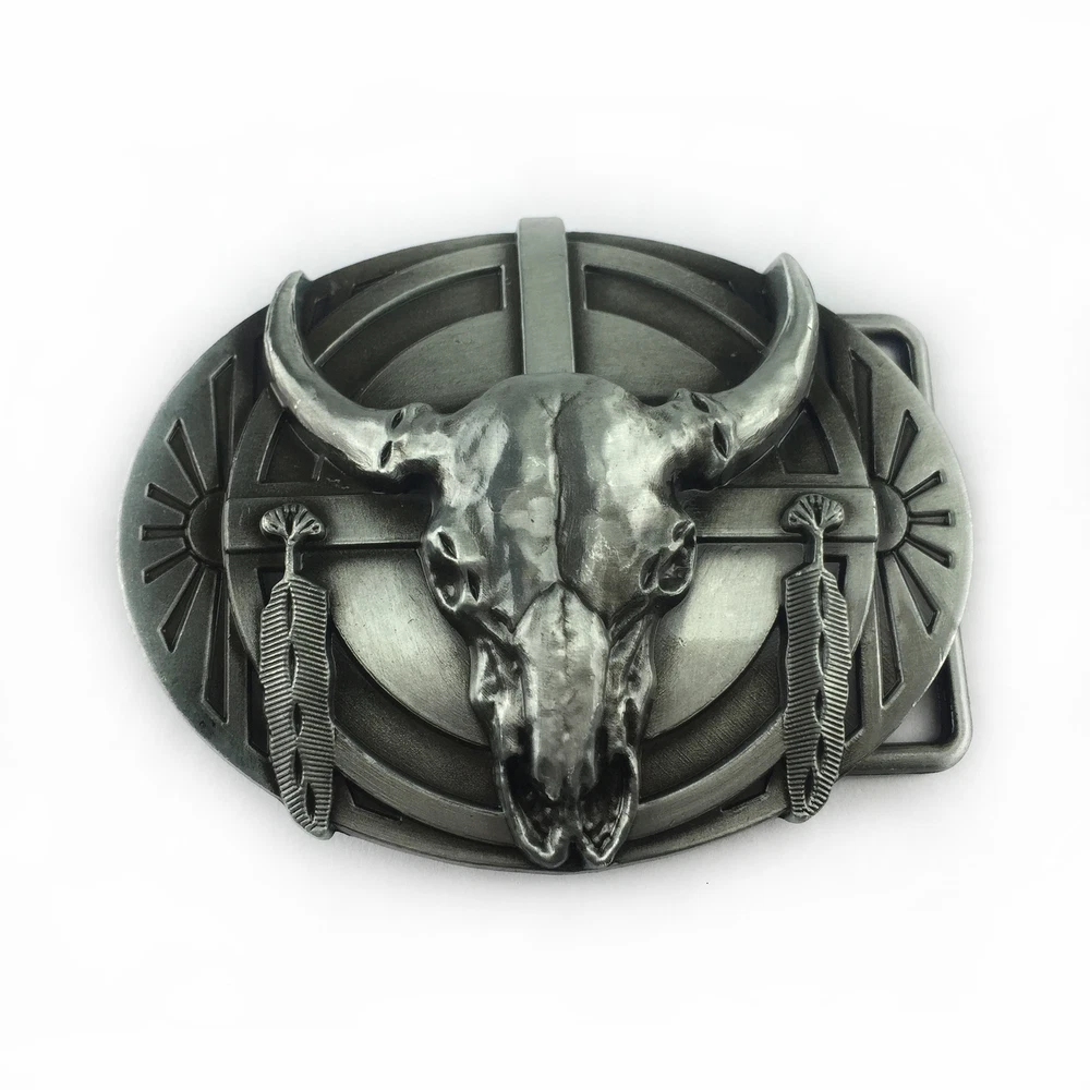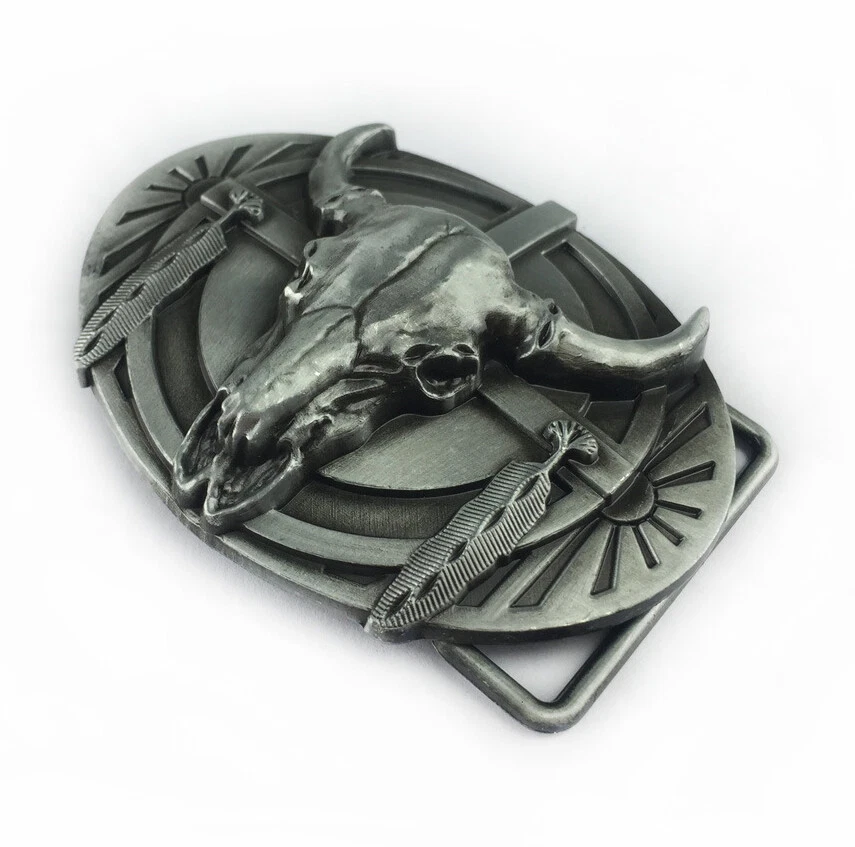 Western Belt Buckle Vintage Style Indian Bull Skull USA Mens Cowboy Rodeo Wear