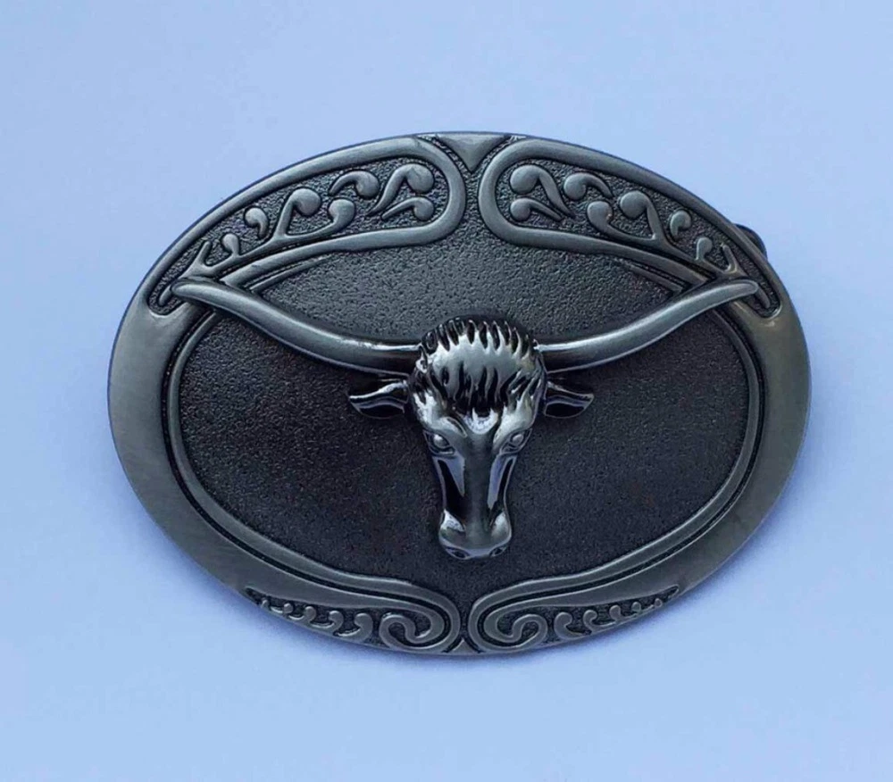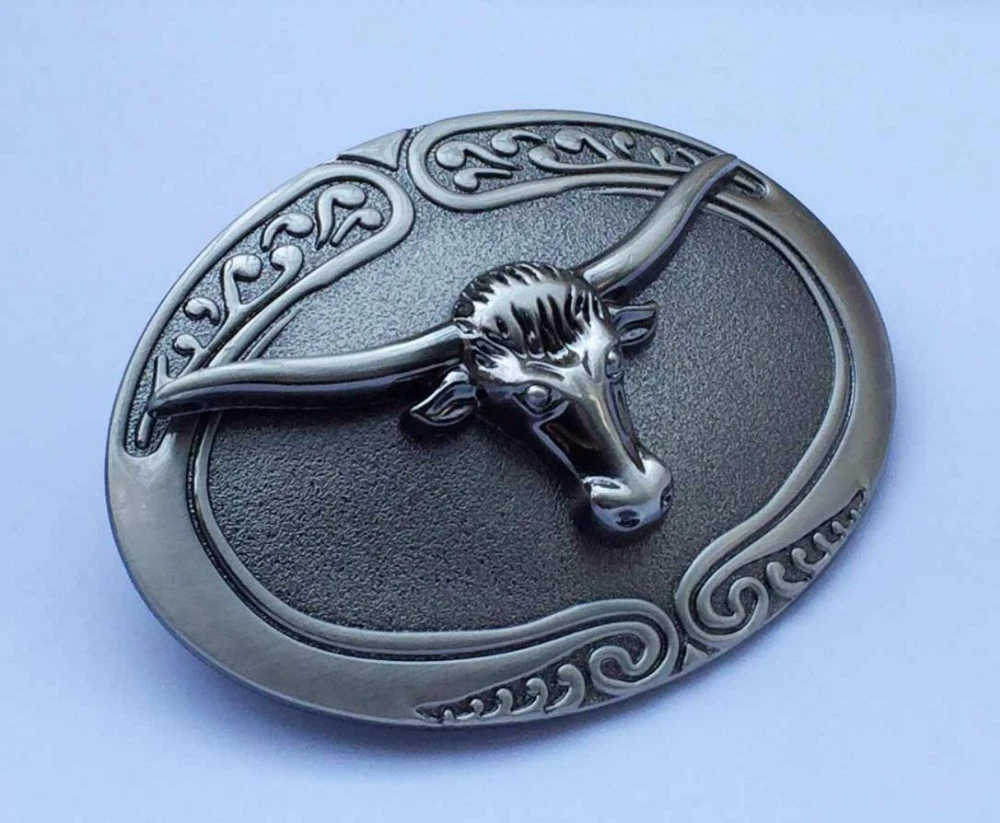 Western Belt Buckle for Men Cowboy Rodeo Vintage Style Wear Longhorn Bull