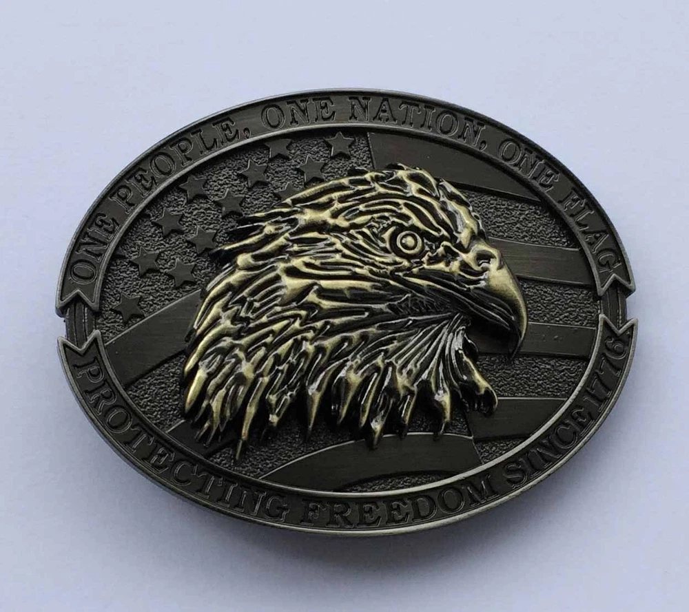 Material: zinc alloy Size:9.0X7.3CM Suitable for belt size: 3.8-4 cm width (up to 1.5inch) Package include: 1 * American Flag Eagle Belt Buckle