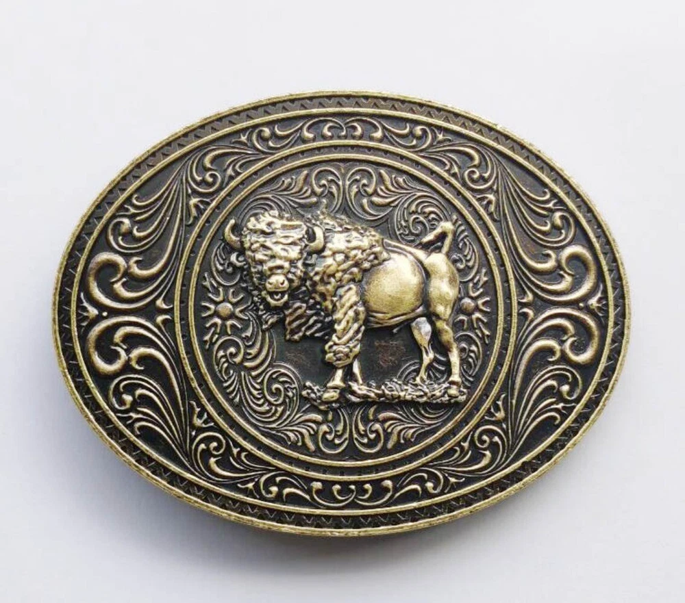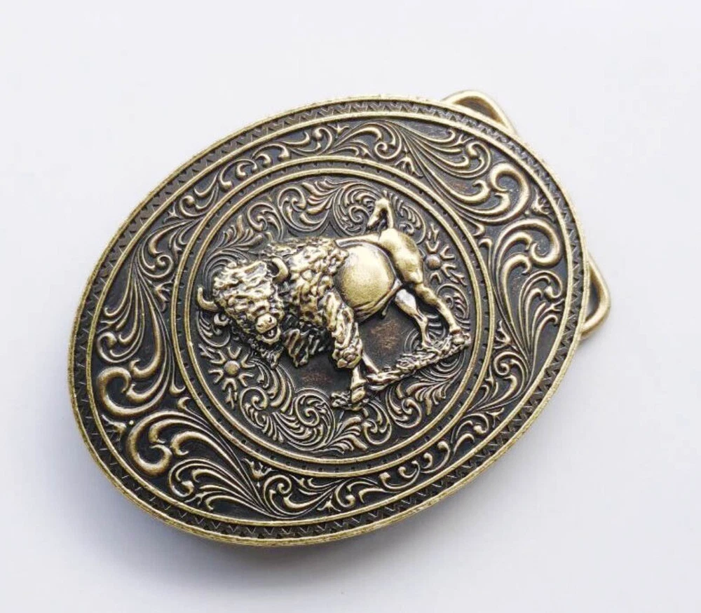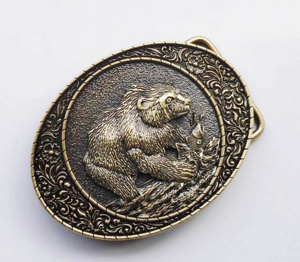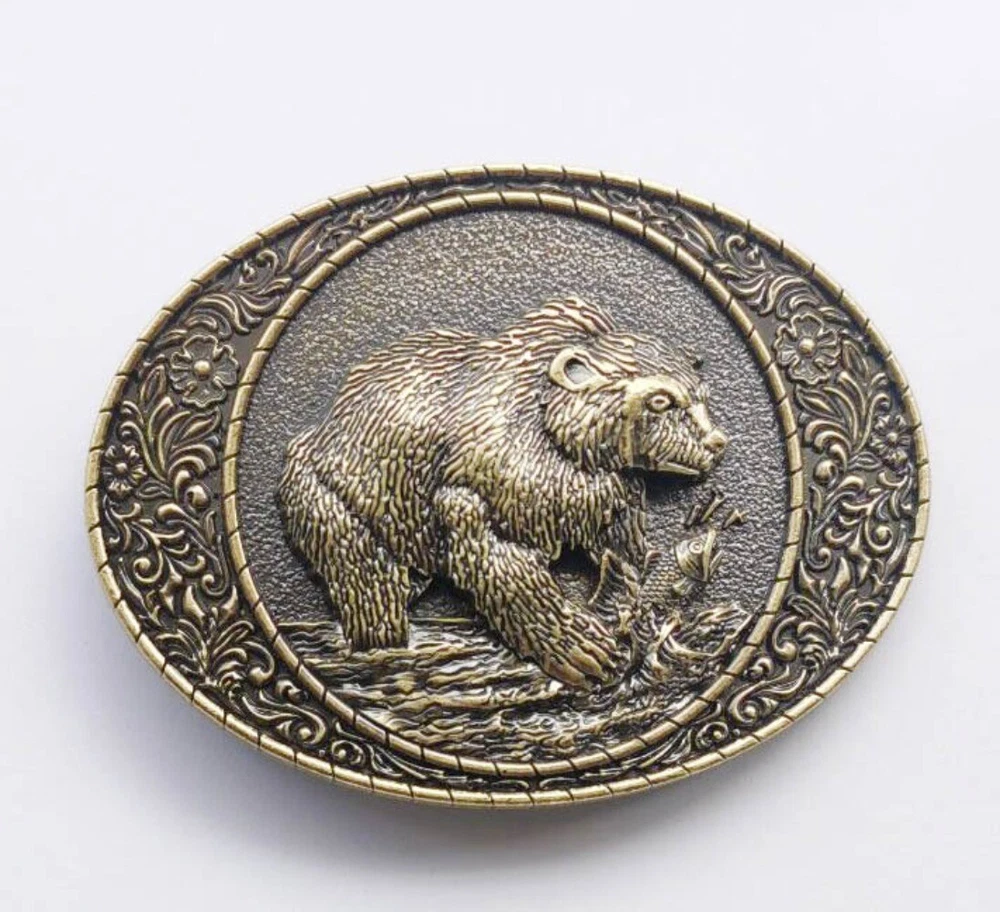 Western Belt Buckle for Men Women Cowboy Rodeo Vintage Style Wear Bear & Buffalo