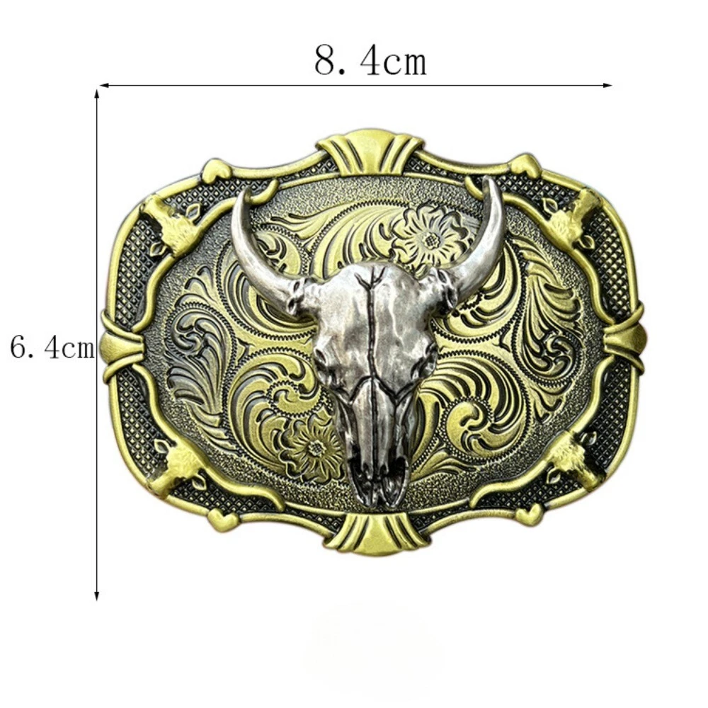 Western Belt Buckle for Men Women Cowboy Rodeo Vintage Style Wear Bull Skull