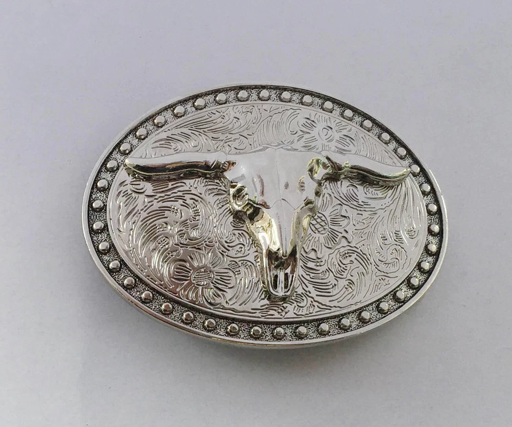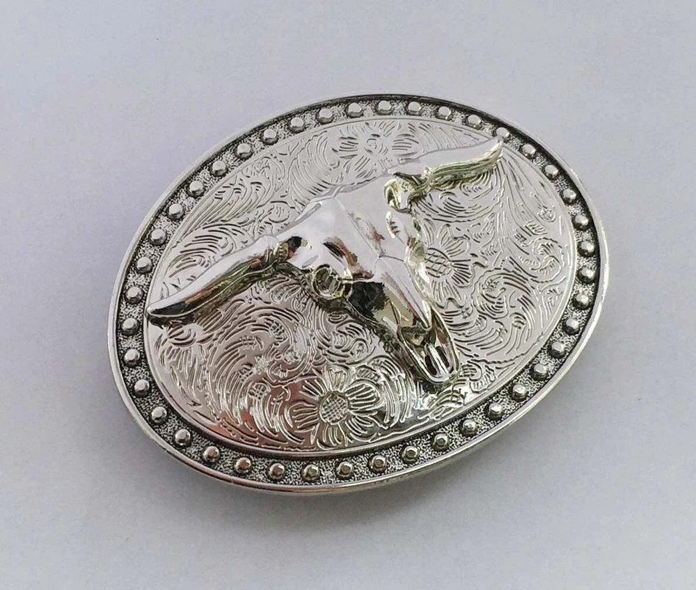 Western Belt Buckle for Men & Women Cowboy Rodeo Vintage Style Wear Bull Skull