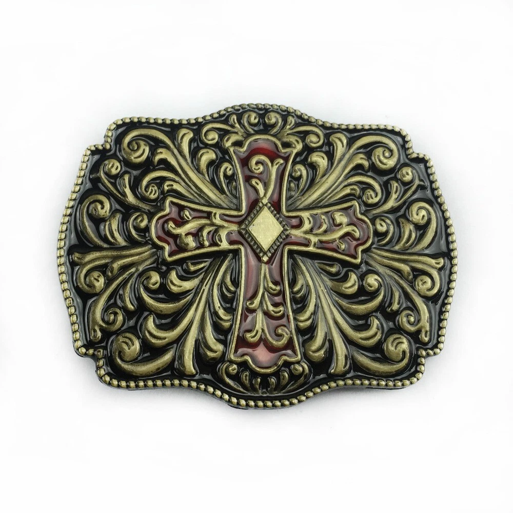Western Belt Buckle for Men & Women Cowboy Rodeo Vintage Style Wear Floral Cross