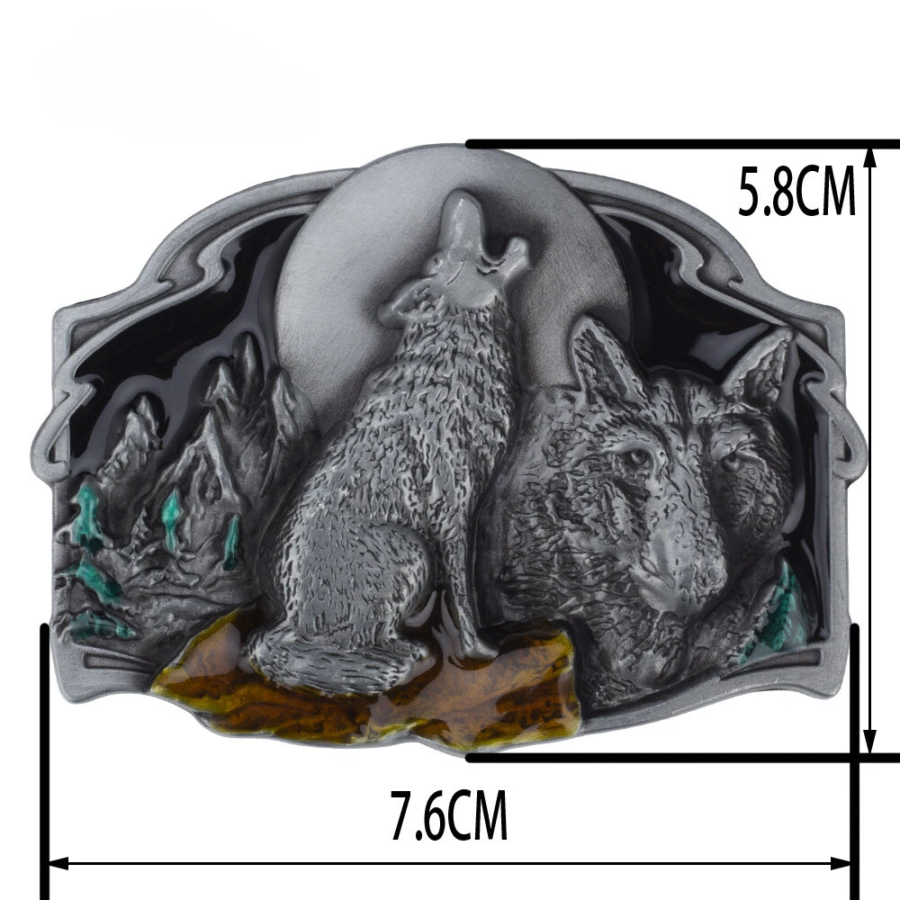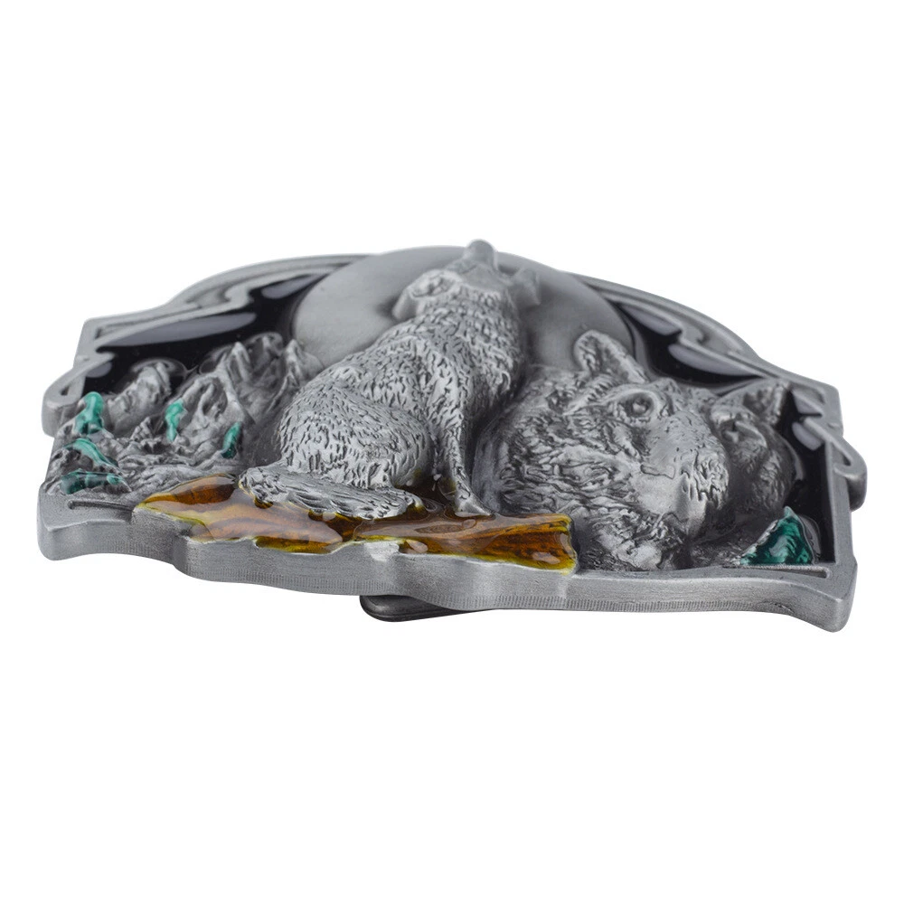 Western Belt Buckle for Men & Women Cowboy Rodeo Vintage Style Wear Wolf Howling