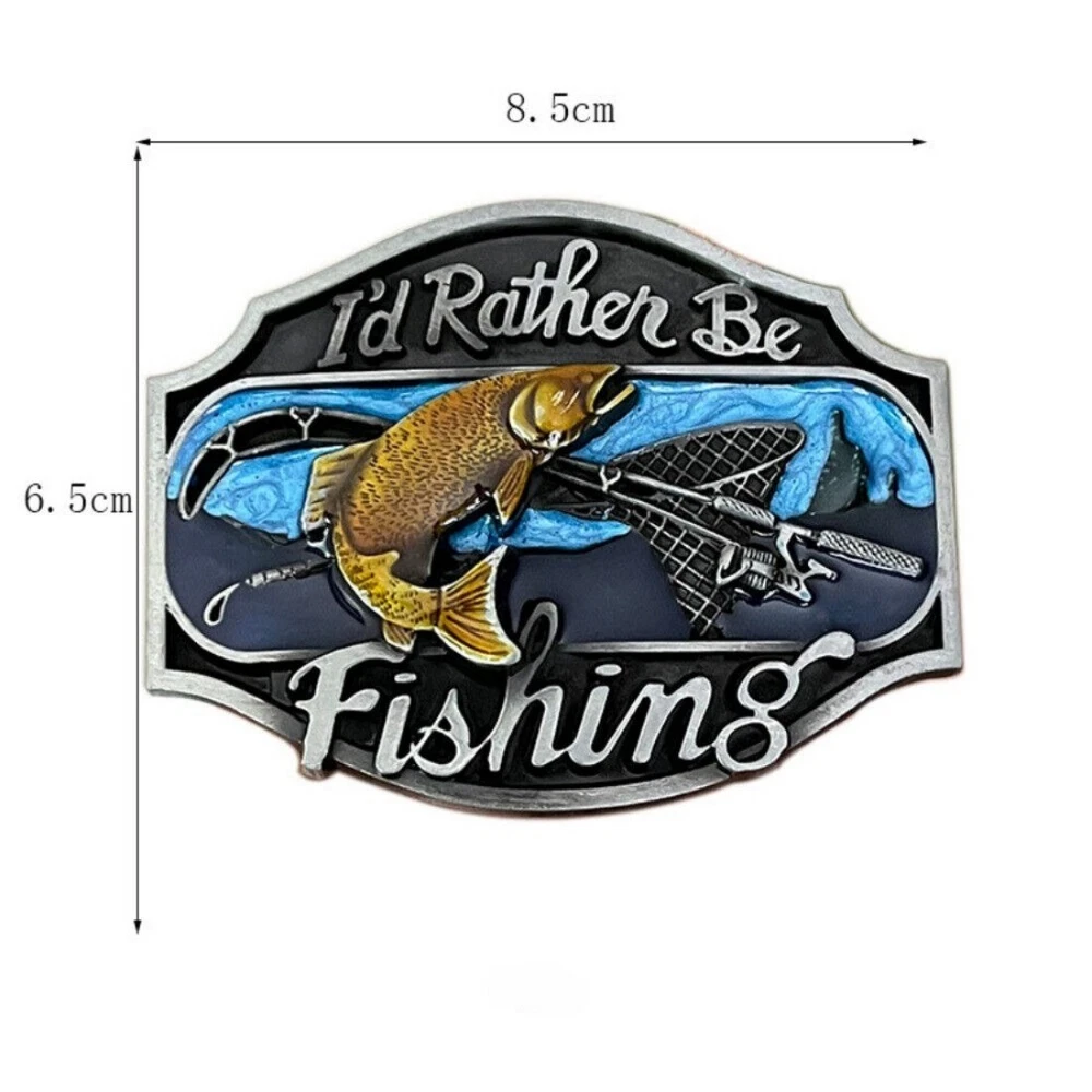 Western Belt Buckle for Men & Women Cowboy Rodeo Wear - I'd Rather Be Fishing