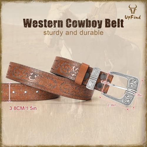 Western Leather Cowboy Belt for Men and Women, Coffee Color, Size 34"-37"