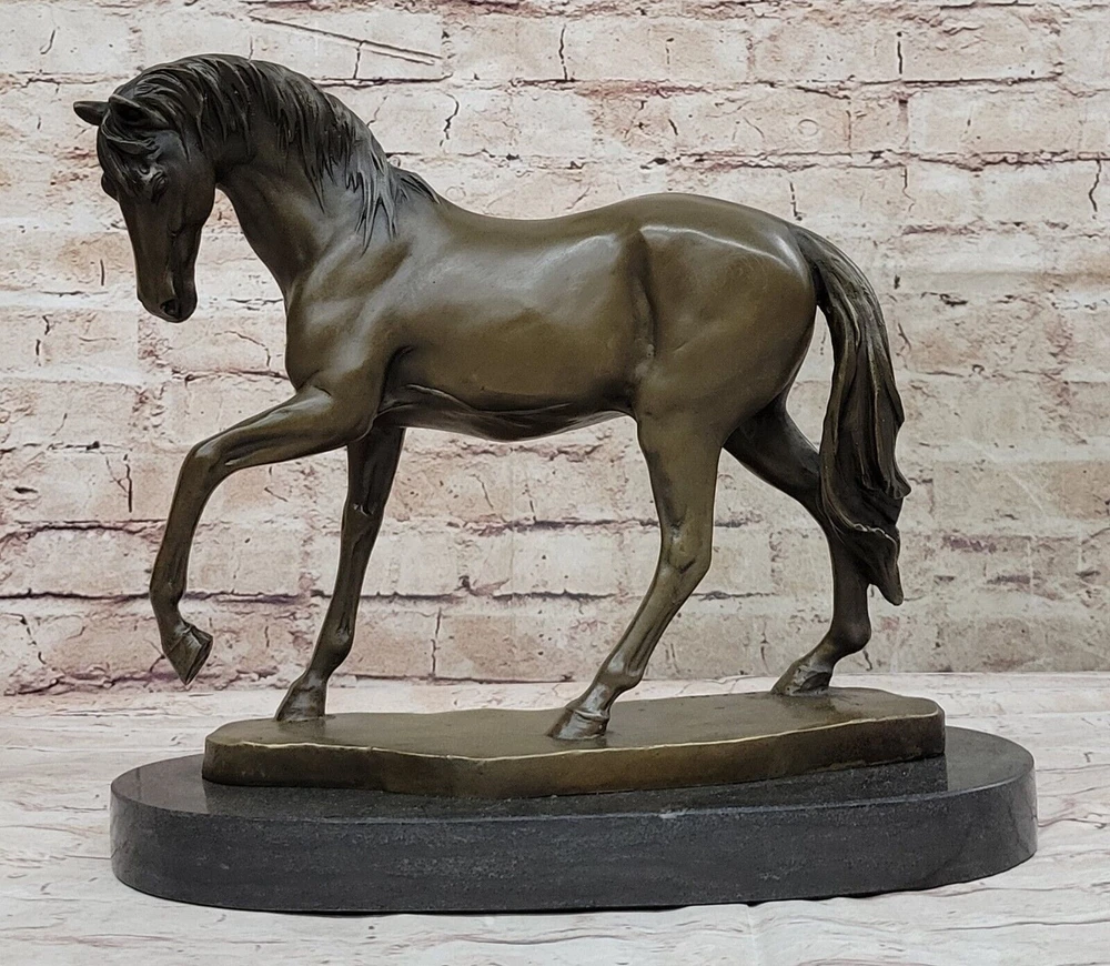 Western Classical ART Bronze Sculpture handsome Horse Figurine Deco Decor Gift Western Classical ART Bronze Sculpture handsome Horse Figurine Deco Decor Gift Condition : This sculpture is in perfect condition. Bronze Dimensions with Marble Base: Height 11" X Width 15" Marble Dimensions: Diameter 12" Height without base:10" Weight:16 LBS Inventory:14YDW2127741 Immerse yourself in the beauty of nature with this captivating bronze sculpture, depicting a magnificent mare gracefully navigating through lush green fields under the warmth of the spring sun. Crafted with meticulous attention to detail, the sculpture perfectly captures the mare's robust physique and flowing mane, evoking a sense of tranquility and grace. Mounted on a base adorned with a grassy patch, the sculpture seamlessly blends into its natural surroundings, creating a harmonious depiction of the mare in her element. Utilizing the revered "Lost Wax Method," the bronze sculpture boasts a rich brown patina that enhances its timeless appeal and enduring beauty. Signed by the esteemed artist Mene, this sculpture is a true testament to the artist's dedication and talent, offering a unique and authentic addition to any art collection. Whether displayed in a home, office, or gallery, this exquisite artwork celebrates the majesty and charm of these magnificent creatures, inviting viewers to experience the captivating allure of nature's beauty in its purest form. inkfrog terapeak Lovely Vintage Austrian Vienna Bronze Horse With Fantastic Details & Workmanship www.bronzhaus.com Video will open in a new window Using the eBay App? Paste link into a browser window: [isdntekvideo] Shipping Terms : Most of our items are shipped via USPS (United States Postal Service) mail or UPS. Most orders are shipped within 24-48 hours of purchase. Please be aware that not all items are available for USPS shipping due to size and weight. We do ship to Hawaii, Alaska, Canada, Puerto Rico, APO/AE, and U.S. Virgin Islands, however, an additional charge may be required. Please contact us before making any purchases in these areas. For Non-USA customers, you may be responsible for all duty, tax, brokerage fees that may be due upon delivery (shipping costs cover freight charges only). We also ship internationally. Please refer to the "Shipping and Handling" chart for the rates for each area. Payment : We accept just about any form of payment. PayPal, Master Card, Visa or American Express credit cards. Money orders, cashiers checks, and even personal or business checks. For governmental institutions, we will also accept a purchase order. Please understand that for personal or business checks we have to wait for the check to clear (usually 7 days) before shipping. Condition : New Detailed Hand Crafted Hot Cast Bronze Satisfaction Guaranteed. This is Stock Photo, Slight Color Variation!! Listing and template services provided by inkFrog