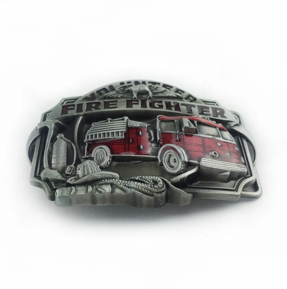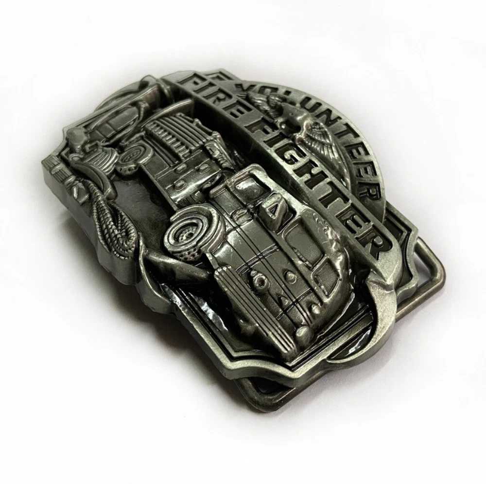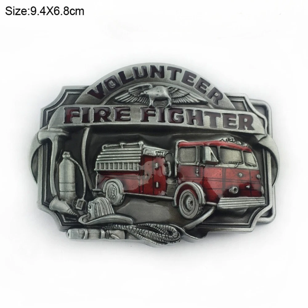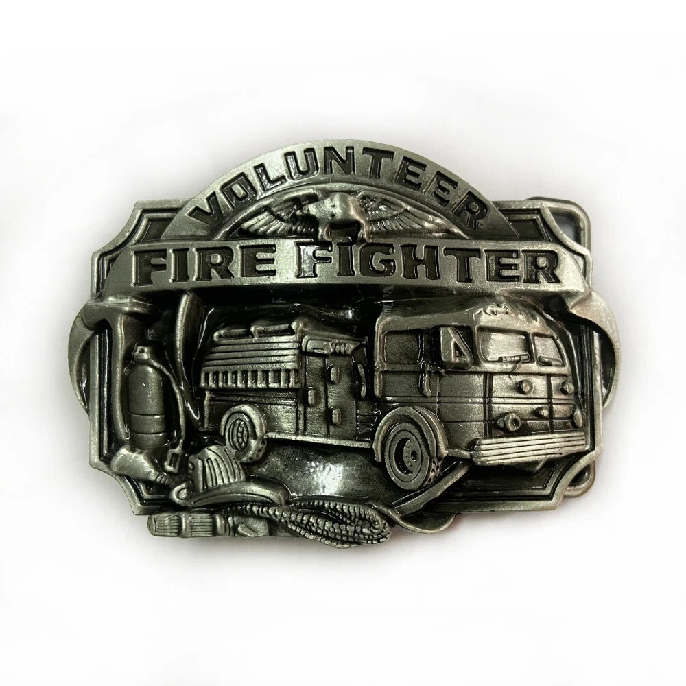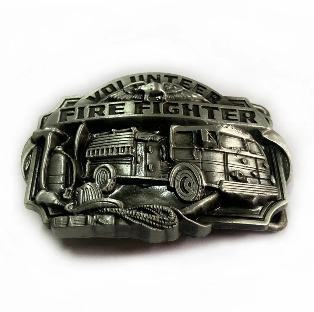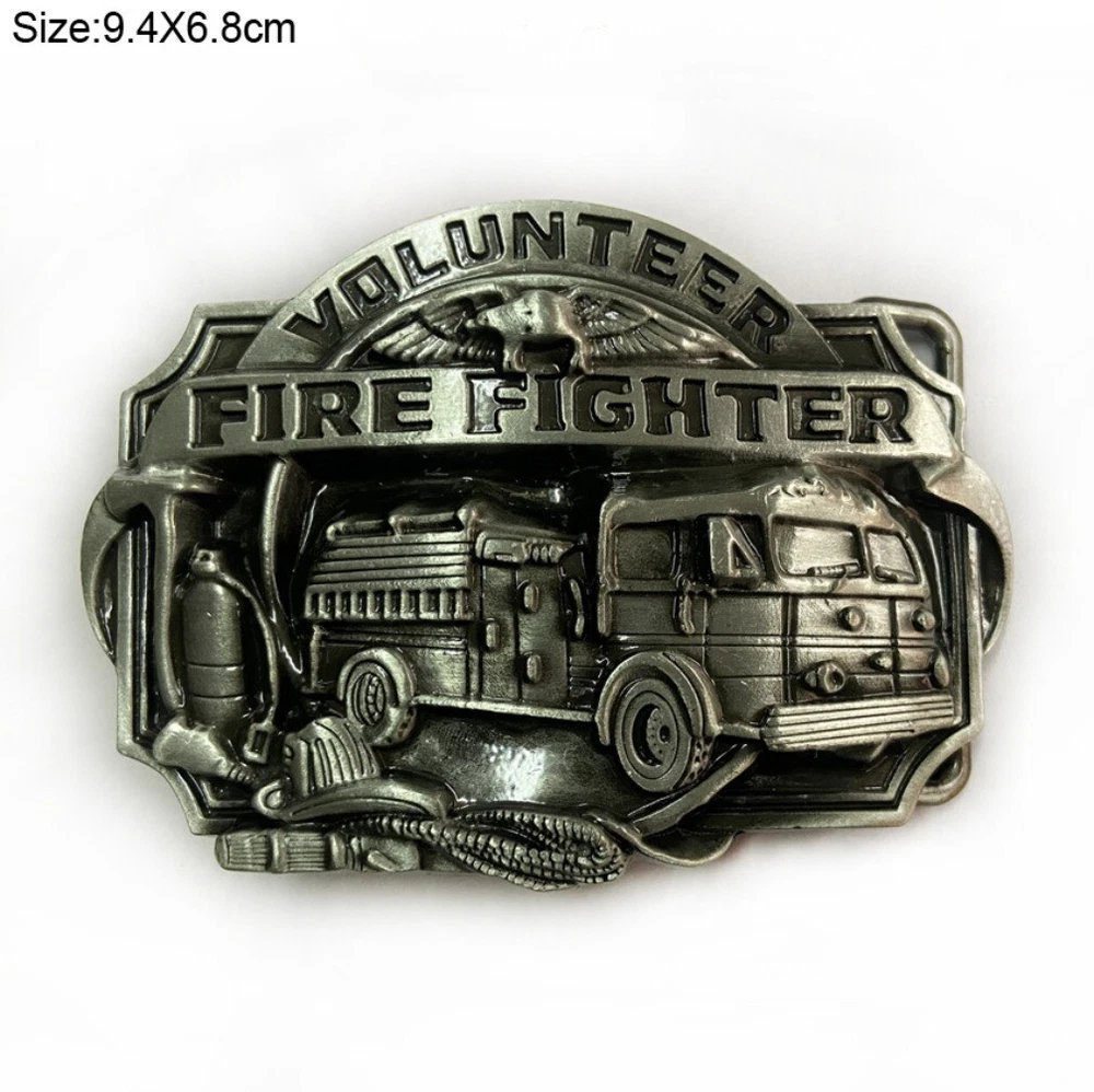 Western Cowboy Belt Buckle for Men USA Retro Rodeo Wear - Volunteer Fire Fighter