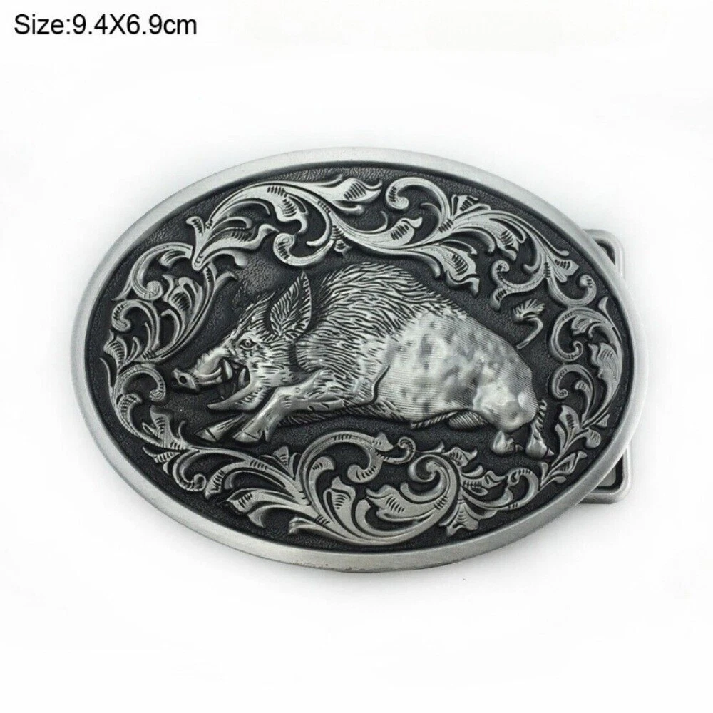 Western Cowboy Belt Buckle for Men & Women USA Retro Rodeo Casual Wear Wild Boar