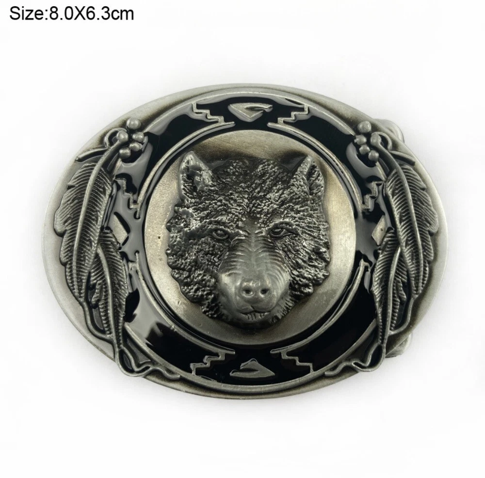 Western Cowboy Belt Buckle for Men & Women USA Retro Rodeo Casual Wear Wolf Head