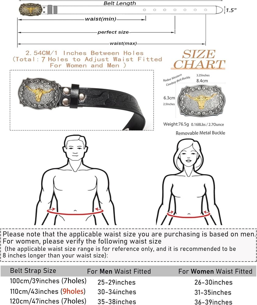 Fast Shipping On All Items 30 Days Money Guarantee Customer Support Excellent Service 100% Satisfaction Satisfaction Guaranteed Western Cowboy-Belts for Men Big-Buckle Longhorn-Bull PU-Leather Rodeo Cowgirl-B Specification Department unisex-adult Color Black(carved-bull) Size 39.37" for 25-29"waist (n/a) Item Description Introducing the Bull Shape Belt Buckle, the perfect accessory for cowgirls and cowboys alike. This belt buckle measures about 1-1/2 inches in width and features an engraved floral and long horn bull design, adding a touch of western charm to your outfit. The buckle is made from high-quality zinc alloy with a golden color, while the belt is crafted from PU leather in either brown or black.With its adjustable design and 7/9 belt holes, you can easily find the perfect fit for your waist. The belt measures approximately 39-47 inches in length, allowing you to wear it directly without any hassle. Whether you're going on a date, traveling, attending office settings, clubs, parties, casual outings, western-themed events, horseback riding, work or ranching, or country dance events, this belt buckle is the ideal accessory. Designed for both men and women, this versatile belt buckle complements any western outfit. It pairs well with cowboy hats, cowboy boots, and other cowgirl accessories. Men can also incorporate this belt buckle into their everyday style, pairing it with jeans or trousers. With its authentic western design and stable construction, this Bull Shape Belt Buckle is a must-have for any cowgirl or cowboy. Add a touch of western flair to your wardrobe today! *The current new type of Longhorn Bull big Buckle PU leather belt has removable screws. About us We offer the best prices around on high quality products. Our E-store includes media such as books, movies, music and games while offering electronics, toys, sporting apparel, clothing, tools, general home, garden items and more. Shipping We are always working hard to ensure your package arrives as soon as possible. Please understand that some factors like weather, high postal traffic, and the performance of shipping companies are outside of our control. We offer free shipping to the lower 48 states and ship within 2-3 business days of payment, usually sooner. We do not accept P.O. Boxes. Please provide a physical address. For shipping outside of the continental USA, we only use eBay's Global Shipping Program.The item is shipped to KY and then sent to the rest of the world. International customers are responsible for all duties and taxes. Continue to check out to calculate costs for shipping the item to your country. Messages regarding eBay's Global Shipping Program MUST be directed at eBay EXCLUSIVELY. Returns We offer a 30-Day Return Policy on items in which you are not completely satisfied with. You have the option of a full-refund or an exchange of the item. No returns are available on items shipped outside of the USA Satisfaction We try over very best to make sure every customer is completely satisfied. If there's a problem, message us! We're happy to help. Payment Options Shop With Confidence