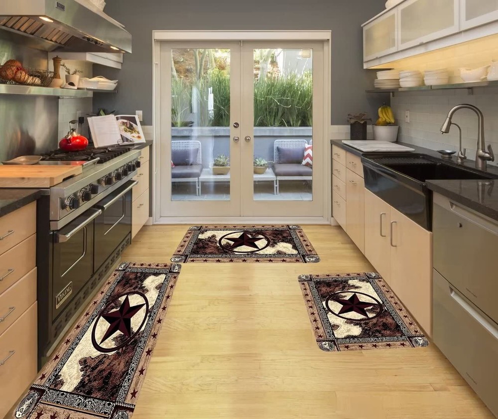 Love these rustic kitchen rugs! The Texas star design adds cozy country charm to my space. They feel durable yet soft underfoot and the wood panel detail ties everything together. Super easy to clean—just toss them in the machine. Great quality for the price, and customer service was quick to respond when I had a question. Perfect for adding a warm, western vibe to any home!