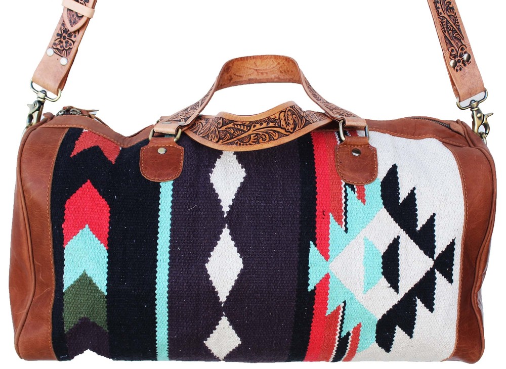 Description Tack Market. Top Brand and Quality products at rock bottom prices. Challenger western duffel weekender travel bag handcrafted from genuine full-grain brown distressed leather to ensure durability for many years. This sturdy duffle bag comes accented with a handwoven multicolor pattern. Makes a great gift, perfect choice for traveling, and weekend trips. Includes a adjustable and removable floral tooled shoulder strap. Full zipper closure roomy main compartment for easy packing. Inside there is two open compartments, and one side zippered pocket for organized storage. Other features include top carry floral tooled handles, wipeable easy-to-clean lined interior, bottom legs for added protection. ?Spacious bag measures 21" L x 10" W x 10" H, providing plenty of room for all of your essentials while conveniently sized to fit in overhead bins. Shipping Items will be shipped within 24 hours of payment received during business days. We observe major US holidays. We use United State Postal Service and UPS Ground as our shipping carrier. Free shipping is only within US with exception of Alaska, Hawaii, PR. We do offer expedited shipping. We ship worldwide. We prefer shipping with UPS for Canada. Physical address is required for large items such as saddle, blankets, saddle bags. We do offer shipping discount for multiple items. Please do not pay each item separately if you want to get combine shipping rate. Combined shipping rate for multiple items in auction format $5.00 off on each additional Item. Payment We accept PayPal payment or major credit cards. Payment must be received within 5 days after auction ends. Texas residents pay 8.25% sales tax. Returns We're happy to exchange your item or refund your money If you are not completely satisfied, you may return your unused item within 30 days from your date of purchase for refund. Return shipping is at the customer's expense. 20% restocking fee will be deducted from original cost. Refund will be madeupon receipt of the item. Shipping cost for an exchange of size or an item less than 20lbs is $15. Send return item with a copy of packing slip.