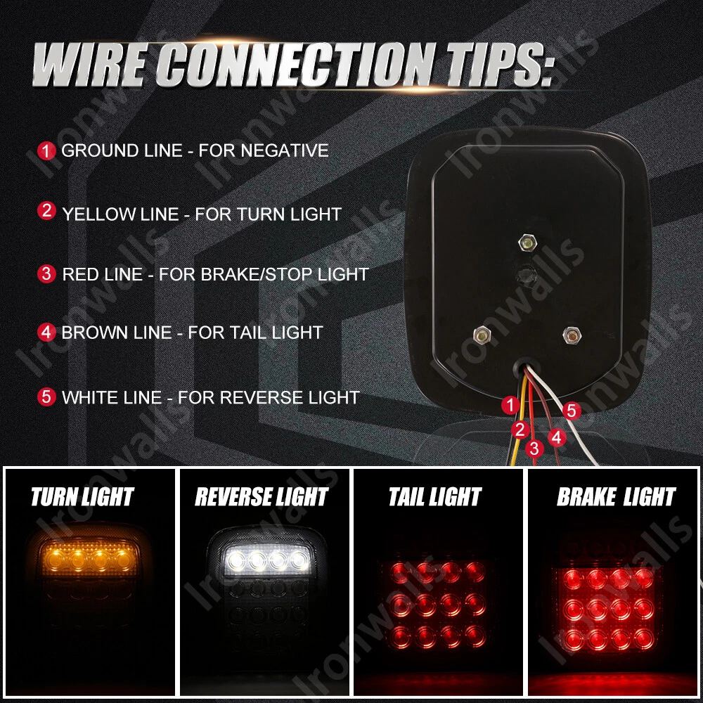 moflowder Welcome Product Description 16LEDs universal smoked black tail light with reverse light, tail light, brake light, turn light modes Fitment: Fit for Kenworth Peterbilt Freightliner Features: * Wide Application: This Universal Stop Turn Signal Light is suitable for most 12V cars; the smoked black border color with smoked lens gives you the latest look and attitude. Suitable for trucks, trailers, SUVs, RVs, campers, boats, flatbeds, buses, forklifts, pickups, etc. * Excellent bright LED: 16 very bright LEDs, brighter than the original light. Provides tail lights, brake lights, turn signals and reverse lighting functions (no license plate lights); 12 red LEDs for brake/steering/tail functions, and 4 white LEDs for reverse and turn signal function. * Sealed and Waterproof: 16LEDs Bi-color Trailer Tail Lights are made of high quality ABS housing and PC lens, fully sealed epoxy resin to resist corrosion and moisture; effectively resist sand, dust, dirt, water and other harsh weather intrusion and corrosion. * Easy to install: 3 bolts can be installed directly on any flat surface. Wire connection with 4 color coding for easy installation; black wire is ground, white wire is reverse light, red wire is brake light, brown wire is tail light, yellow wire is turn signal light. * What you will receive: 2 x 12V 16LEDs tail lights; Professional installation is highly recommended (instructions not included), please note that some modifications or drilling are required during installation, so before buying, please confirm the product information is what you need of. Specification: Name: tail light Voltage: 12V Light source: 16LEDs 4 light modes: reverse light, tail light, brake light, turn light (Both lights flashing yellow at the same time indicate hazard light) Light color: white light, red light, amber light Location: rear Lens color: smoke black Packing included: 2 PCS 16 LED Tail Lights Note: 1. Due to manual measurements and slight color variations, please allow 1-3 cm (0.4-1.18 inches) difference to suit different display settings. 2. Due to the light and screen difference, the item's color may be slightly different from the pictures. Please understand. Product Display Payment We accept PayPal via eBay Secure Check-Out only. Payment is expected within 7 days of auction close. Unpaid Items will be forfeited per eBay . Immediate payment needs to be processed for items with Add to Cart option so that any promotional discounts can be applied to your order immediately. Shipping Notice: 1 .We do everything we can to ship your orders out as soon as possible. 2. Shipping and Handling: We process orders within one business day after the payment was clear. ---For domestic economic shipping, It normally takes 2-8 days for delivery. We may ship your order(s) from different warehouses for expedited delivery as we utilize alternative warehouses across the Continental United States.You may upgrade to UPS 3-day Selected which delivery time is typically 1-3 business days. Please be noted that, this service is more recommended for Monday-Thursday orders. Orders on Friday may be processed on following Monday by UPS, according to UPS's policy. ---For International Orders, items may be shipped from our warehouse in south China. Both are the same products and same warranty. Duties and taxes may apply. Please check with your country's custom and eBay policy for more information. Returns Our 30-day Satisfaction Guarantee assures our customers that they will receive all orders promptly and exactly as described. In addition, it allows customers to return new and unused products in their original factory condition for any reason within 30 days from the date of purchase. 1. All returns must be pre-approved by Rbigdoggy and have a return merchandise authorization(RMA) number. Unauthorized returns will not be accepted. 2. Buyers are responsible for appropriate packing, returning shipping cost, insurance and returning the item in "new" condition. Used items will not be accepted for return. 3. We will replace the returning item with an identical item, issue a full store credit or a full refund. The sole and exclusive maximum liability to Rbigdoggy arising from any product sold on Rbigdoggy ebay account shall be the price of the product ordered. Feedback 1. We appreciate your business and strived to improve our customer service and our commitment to quality. 2. We will leave a positive feedback immediately after payment is received. We appreciate a positive feedback as much as you do. 3. If for some reason there is any issue with the purchase, please contact us prior to leaving feedback, and we will be glad to work with you to have it resolved. Thank you for visiting my store!