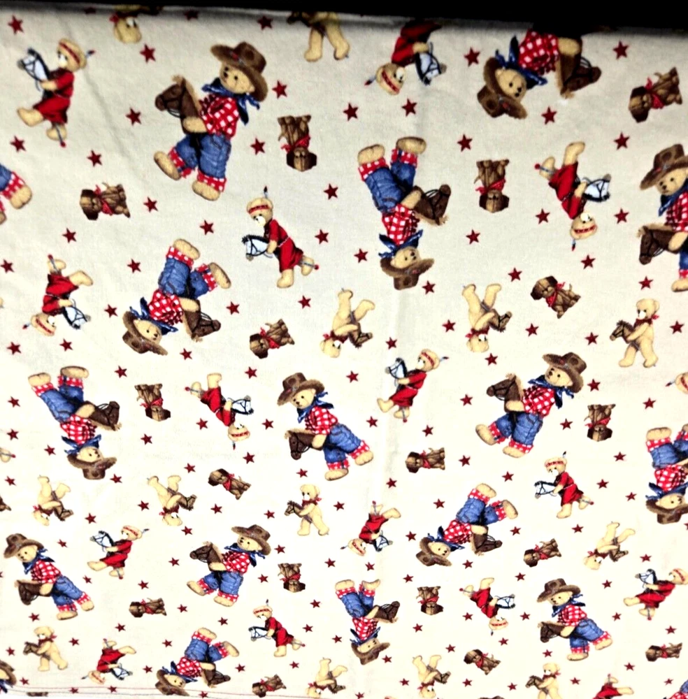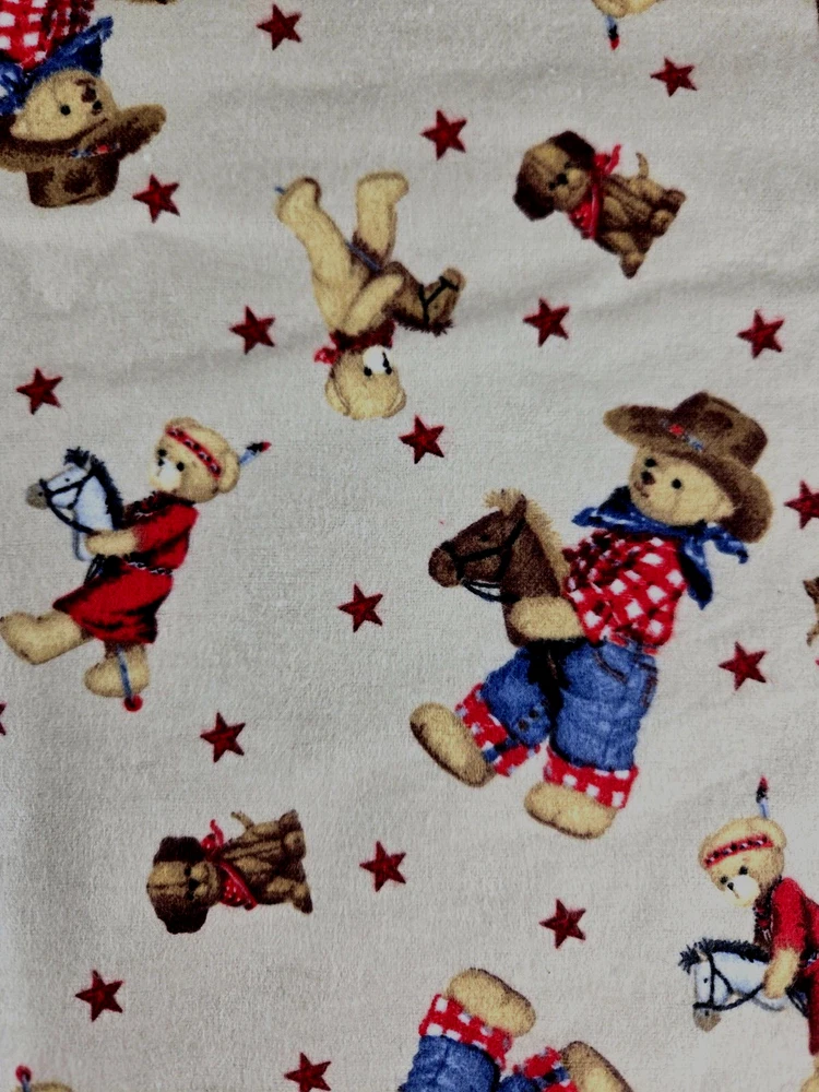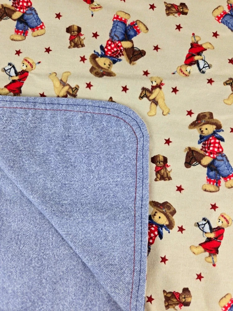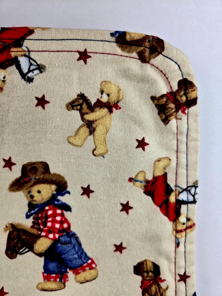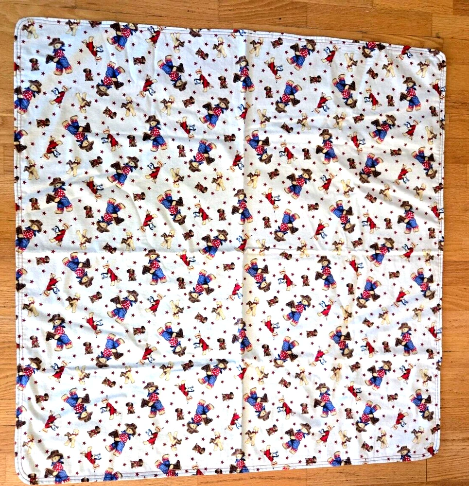 Western Teddy Bear Baby Blanket Handmade 41" by 42" REDUCED PRICE This adorable handmade flannel baby blanket features a charming western teddy bear theme, perfect for snuggling up with your little one. Measuring 41" by 42", this blanket is made from high-quality flannel material, ensuring both softness and durability. The blanket is easy to care for and comes in a beautiful beige, blue, red, and brown color palette. It is reversible. Suitable for both boys and girls and is an ideal addition to any nursery or baby's bedding collection. With its unique design and high-quality construction, this blanket is sure to become a cherished favorite. We carefully pack each item to prevent breakage. We only charge what the shipper charges and cannot control the shipping costs. We do not accept returns/refunds unless item is not as described per eBay policy or the item arrives damaged or broken beyond anything noted in the condition field or pictures. If you have any questions about any of our listed items, feel free to email us.