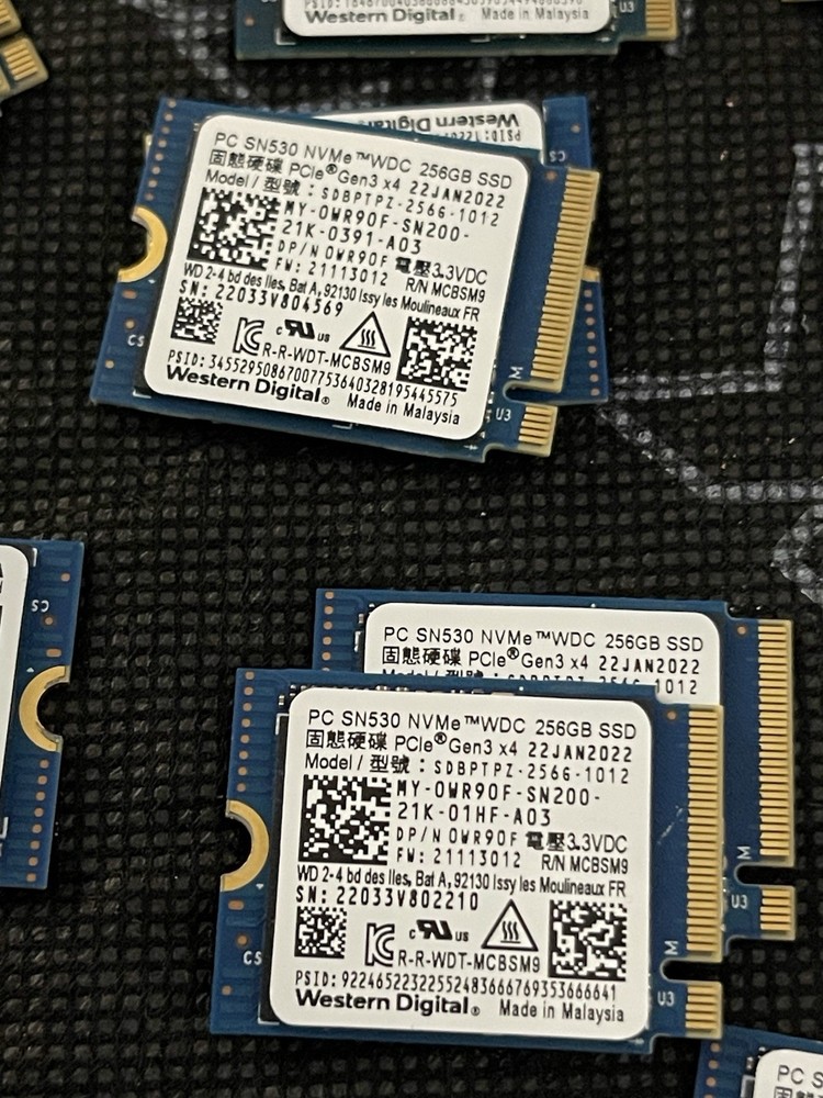 All HAVE BEEN WIPED & TESTED IN WORKING CONDITION The Western Digital SN530 256GB NVMe SSD is a high-performance solid-state drive designed for internal use in computers and laptops. With a compact form factor of 0.7 inches and a sleek blue color, this SSD offers fast data transfer rates and ample storage capacity for quick boot-up times and smooth multitasking. The NVMe interface ensures efficient data processing, making it a reliable choice for enhancing overall system speed and responsiveness.