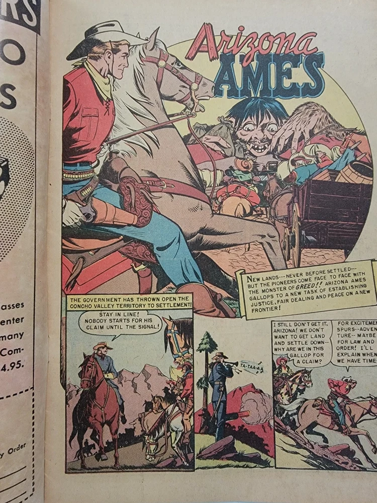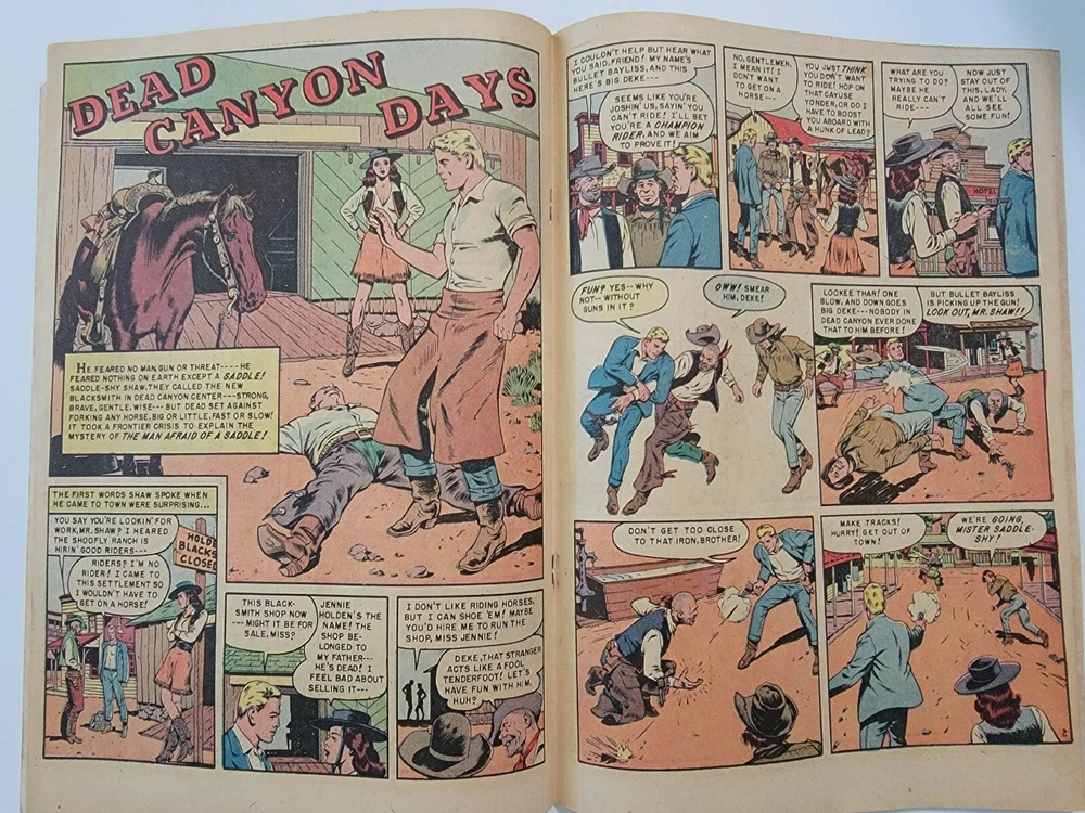 Tradition: US Comics Universe: Western Era: Golden Age (1938-55) Format: Single Issue Type: N/A Series Title: Westerner Superhero Team: na Genre: Western Grade: 4.5 Very Good+ Author: N/A Features: Reprint Publisher: I. W. Publishing Object Type: N/A Publication Year: 1964 Character: Arizona Ames Original/Reproduction: Original Story Title: Westerner Issue Number: 16 issue: 16 Publication Name: Westerner Main Character: Arizona Ames Industry: N/A Artist/Writer: Various Cover Artist: Various