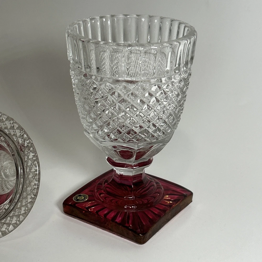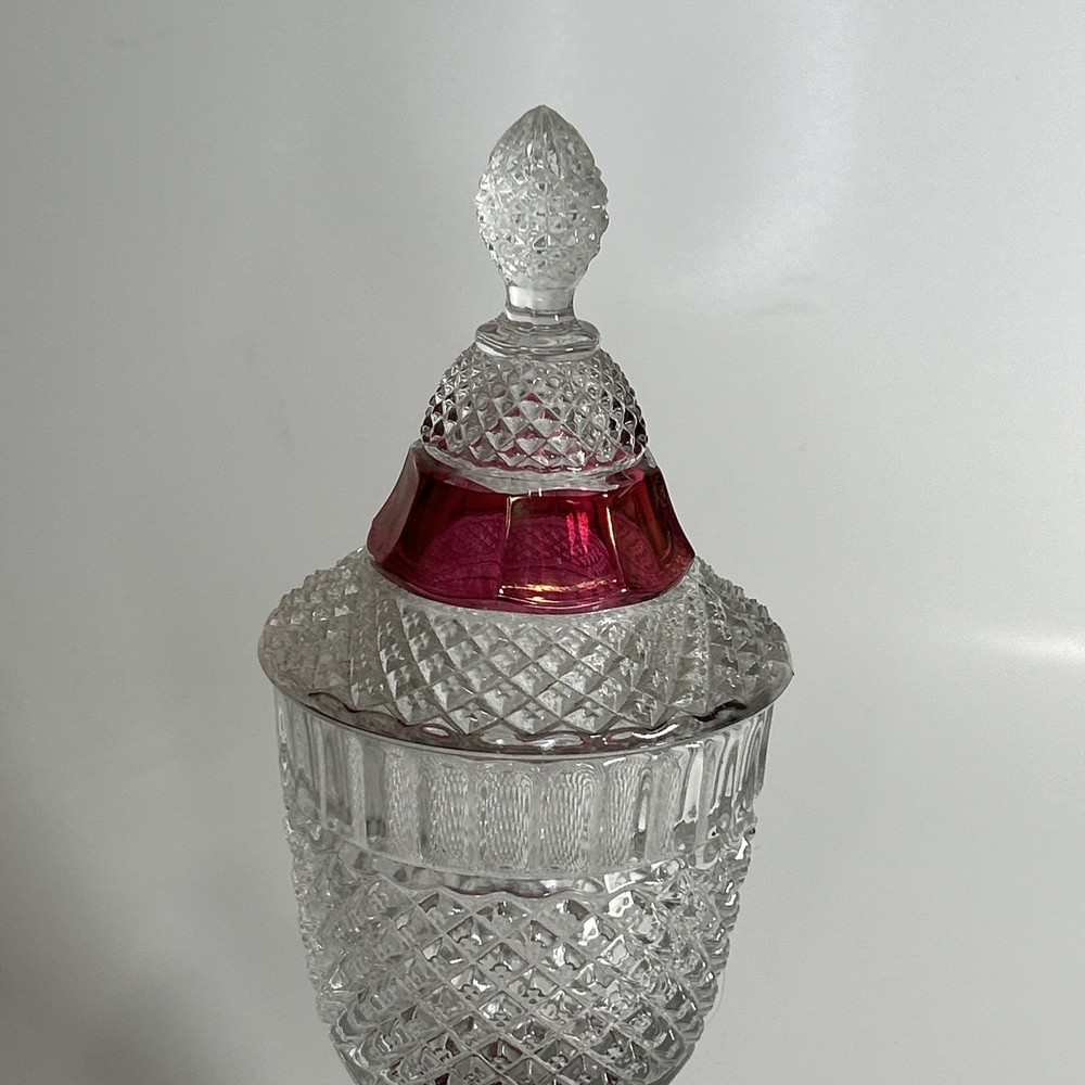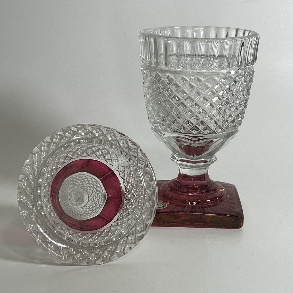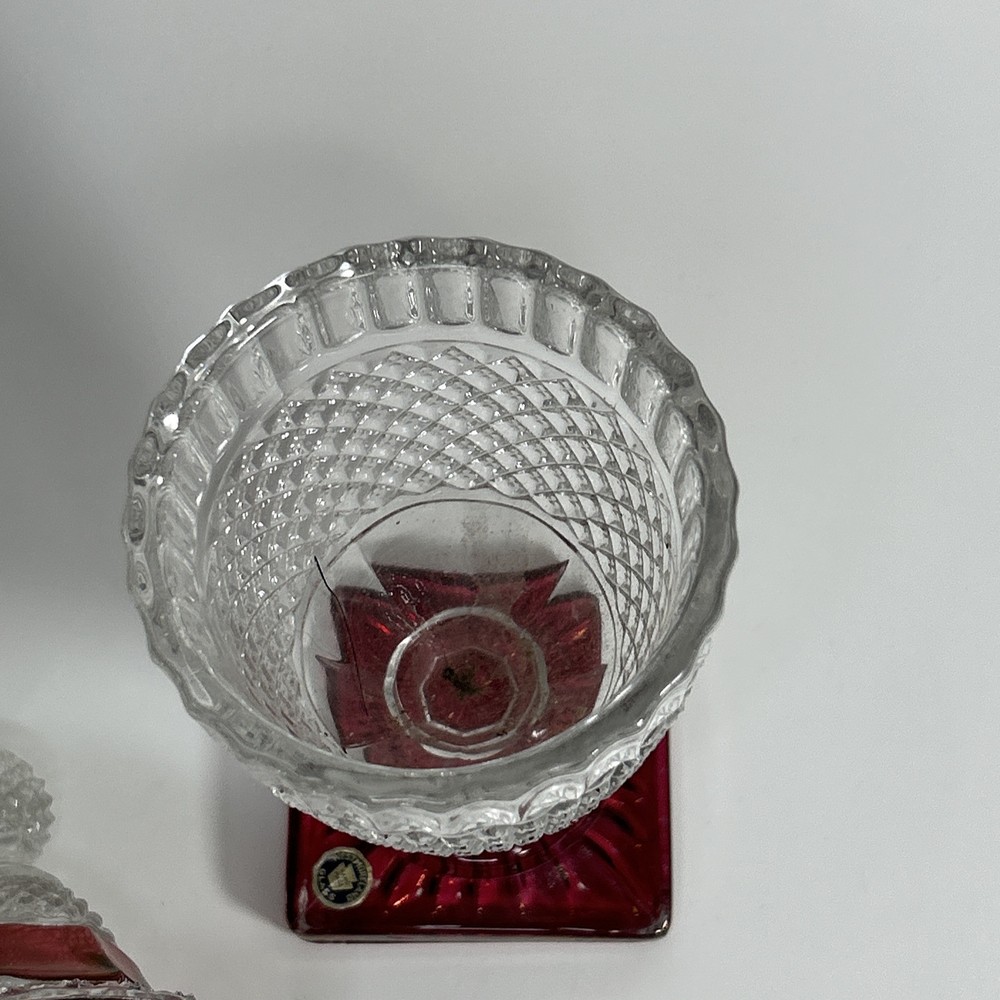 Item Height:8 1/2 inCare Instructions:Hand Wash OnlyColor:Clear RedNumber of Items in Set:2Finish:GlossyBrand:WestmorelandType:Candy DishVintage:Yesgtin13:does not applyUPC:does not applyOriginal/Licensed Reproduction:OriginalProduction Style:Cranberry GlassMaterial:Glass
