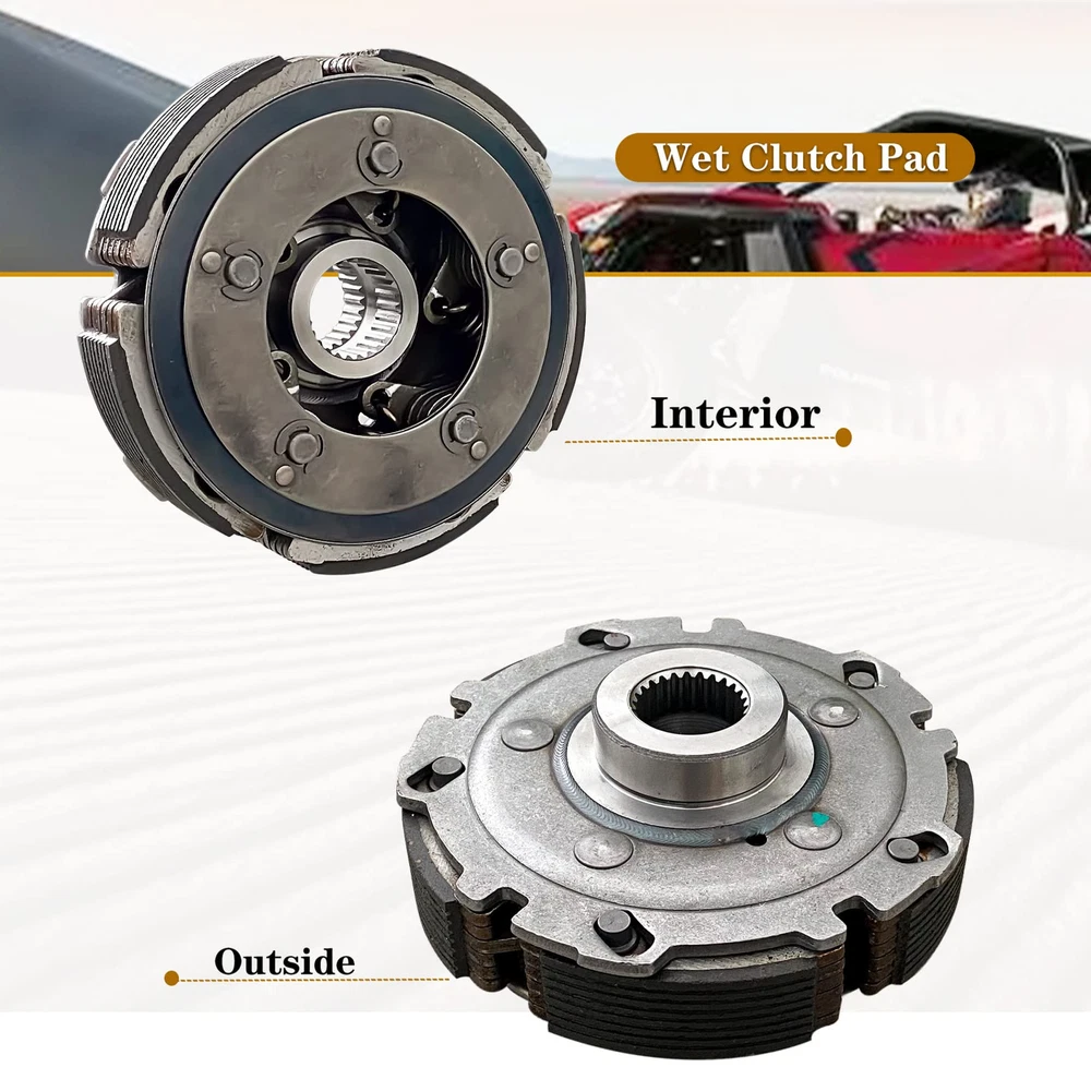 √【PACKING INCLUDE】:Clutch Cover Drum,Wet Shoe Clutch,Gasket,One Way Bearing,Oil Filter,Oil Seal,Clutch Nuts and Shim.same as picture.Brand New10 packs. √【Compatible With】MASSIMO, COLEMAN, SUPERMACH, HiSUN UTV500 and 700, ATV500 and 700, MSU-500, MSU-700,Menards Yardsport YS500, YS700,Massimo Alligator 500 700 700-4,Supermach UTV500 BF TL, UTV700 BF TL ; Qlink FrontRunner 500 EFI 700 EFI 700XL EFI. √【Merit】The oil filter with nuts is more convenient to replace,wet clutch kit made of high-quality carbon steel, with good heat dissipation effect, Stable performance, Safe and reliable,smooth operation,Reduce vibration and improve product durability. √ 【Easy to install】Tested by professionals each accessory of the wet clutch shoe assembly can be precisely matched.Work very good and is very easy to install. √Our products are designed according to OEM specifications.Replacement OEM Part numbers.,21200-F39-0000.