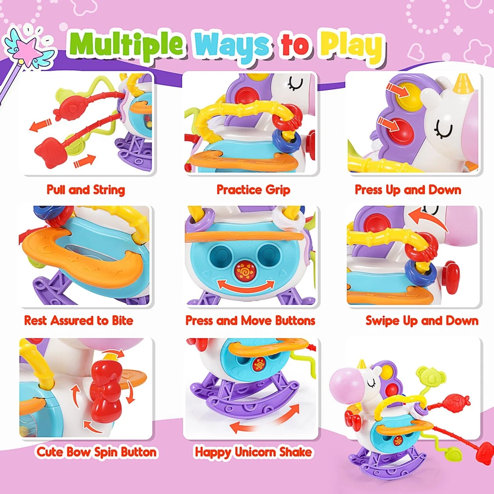 WethCorp Baby Toys 6-12 Month Year Old, Baby Sensory Toys for 6-12 Month Unicorn Montessori Toys Unicorn Pull String Toys for Baby Girls 6-12 Months Gifts for Girls Airplane Travel Toys 12-18 Months Unicorn Toys for Girls - Our new design of unicorn theme toys have 8 way to play include pull and string, practice grip, press up and down, rest assured to bite, press and move buttons, swipe up and down, cute bow spin button and happy unicorn shake. Different ways of playing satisfy the baby's fantasy of toys Montessori Toys for 1+ Year Old - This baby toy is designed to help toddlers develop their early education. Pull and string and practice grip can help them develop fine motor skills, bright colors inspire baby's vision development, press up and down can help them develop hand eye coordination and so on. Child-Safe Design - This unicorn pull string toy made with food grade silicone and ABS,It has passed CPSIA & ASTM F963 certification in the US.100% safe material, Non-toxic, BPA and phthalate free. This toy is soft, durable, and easy to clean. Don't worry, we ensure the safety of babies. Perfect Travel Toys for baby - This unicorn toy for baby is small in size, easy to carry, whether you're embarking on a plane journey or a road trip, Our toys are designed to keep your child happy along the way. Make our toys the perfect playmates for your baby on the road! Ideal gift for baby - Ideal Unicorn theme baby toys, Suitable as a gift for birthday, Children's Day, Easter, Christmas, Thanksgiving and New Year for your kids, they will definitely fall in love with this toys. Recommended for kids over 1+ years old. Unicorn Toys for Girls - Our new design of unicorn theme toys have 8 way to play include pull and string, practice grip, press up and down, rest assured to bite, press and move buttons, swipe up and down, cute bow spin button and happy unicorn shake. Different ways of playing satisfy the baby's fantasy of toys Montessori Toys for 1+ Year Old - This baby toy is designed to help toddlers develop their early education. Pull and string and practice grip can help them develop fine motor skills, bright colors inspire baby's vision development, press up and down can help them develop hand eye coordination and so on. Child-Safe Design - This unicorn pull string toy made with food grade silicone and ABS,It has passed CPSIA & ASTM F963 certification in the US.100% safe material, Non-toxic, BPA and phthalate free. This toy is soft, durable, and easy to clean. Don't worry, we ensure the safety of babies. Perfect Travel Toys for baby - This unicorn toy for baby is small in size, easy to carry, whether you're embarking on a plane journey or a road trip, Our toys are designed to keep your child happy along the way. Make our toys the perfect playmates for your baby on the road! Ideal gift for baby - Ideal Unicorn theme baby toys, Suitable as a gift for birthday, Children's Day, Easter, Christmas, Thanksgiving and New Year for your kids, they will definitely fall in love with this toys. Recommended for kids over 1+ years old. Shipping from the USA All of our products are shipped from the USA, ensuring quick delivery to your destination. Payment We offer the following payment methods: PayPal, credit card, bank transfer, and eBay's secure payment system. Free Shipping & Free Returns Shipping within the USA is FREE. Additionally, any return is absolutely free for you. Risk-Free Purchase You have the option to return an item within 30 days without any justification. We cover the return shipping costs! Fast Shipping We ship immediately upon receipt of payment. Generally, the package is delivered within 2-3 days in the USA. If it takes longer, we will contact you. Quality and Costs Made in Europe, USA, China No customs fees or additional charges Total satisfaction guarantee Invoice with declared VAT available upon request in .pdf format Feedback Your feedback is very important to us. After you pay for your purchase, you will automatically receive positive feedback from us.