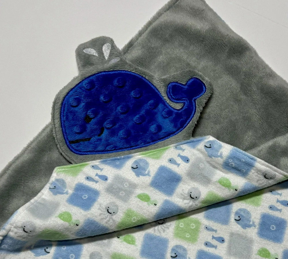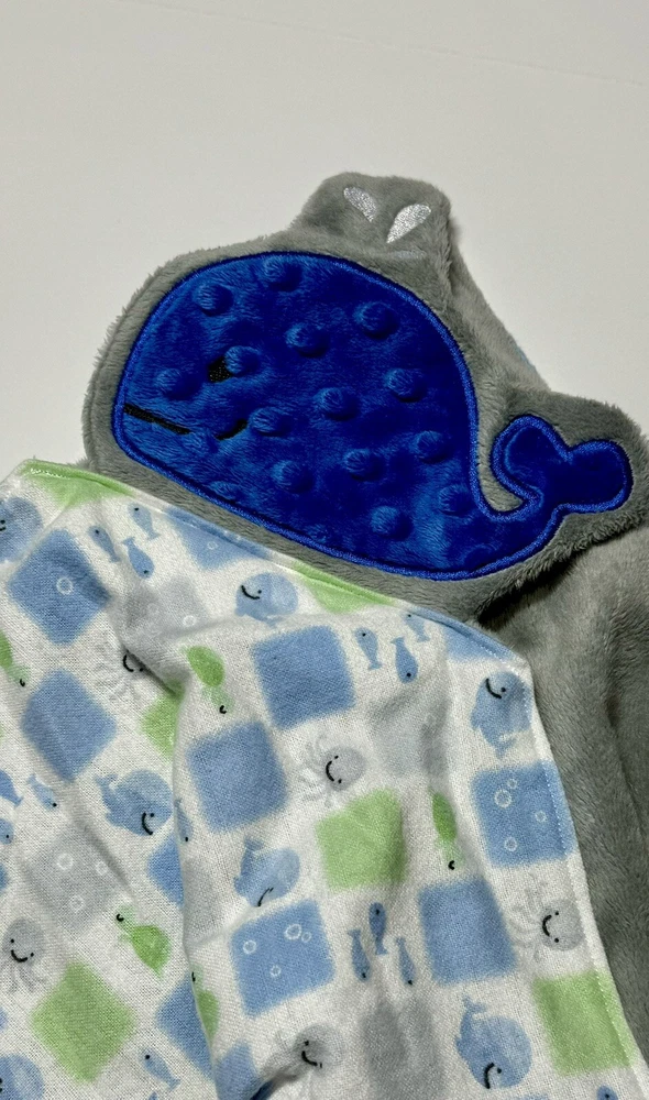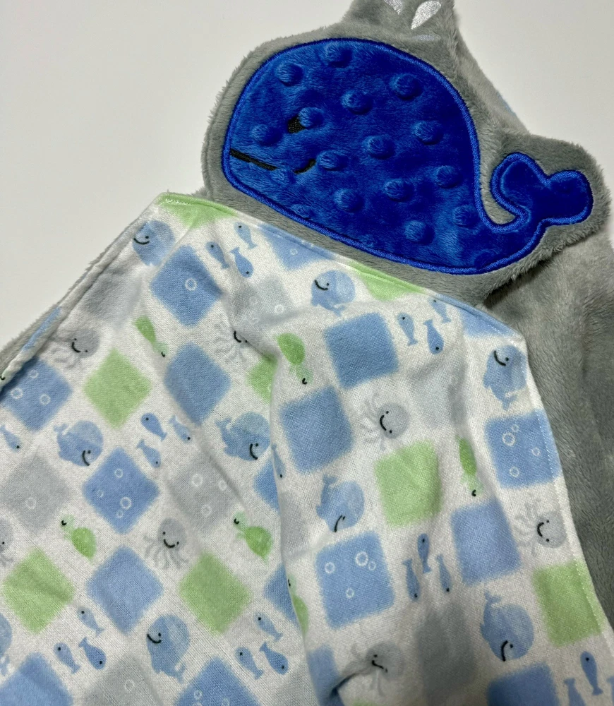 Whale Baby Lovey Security Blanket Appliquéd Flannel Minky Baby Gift