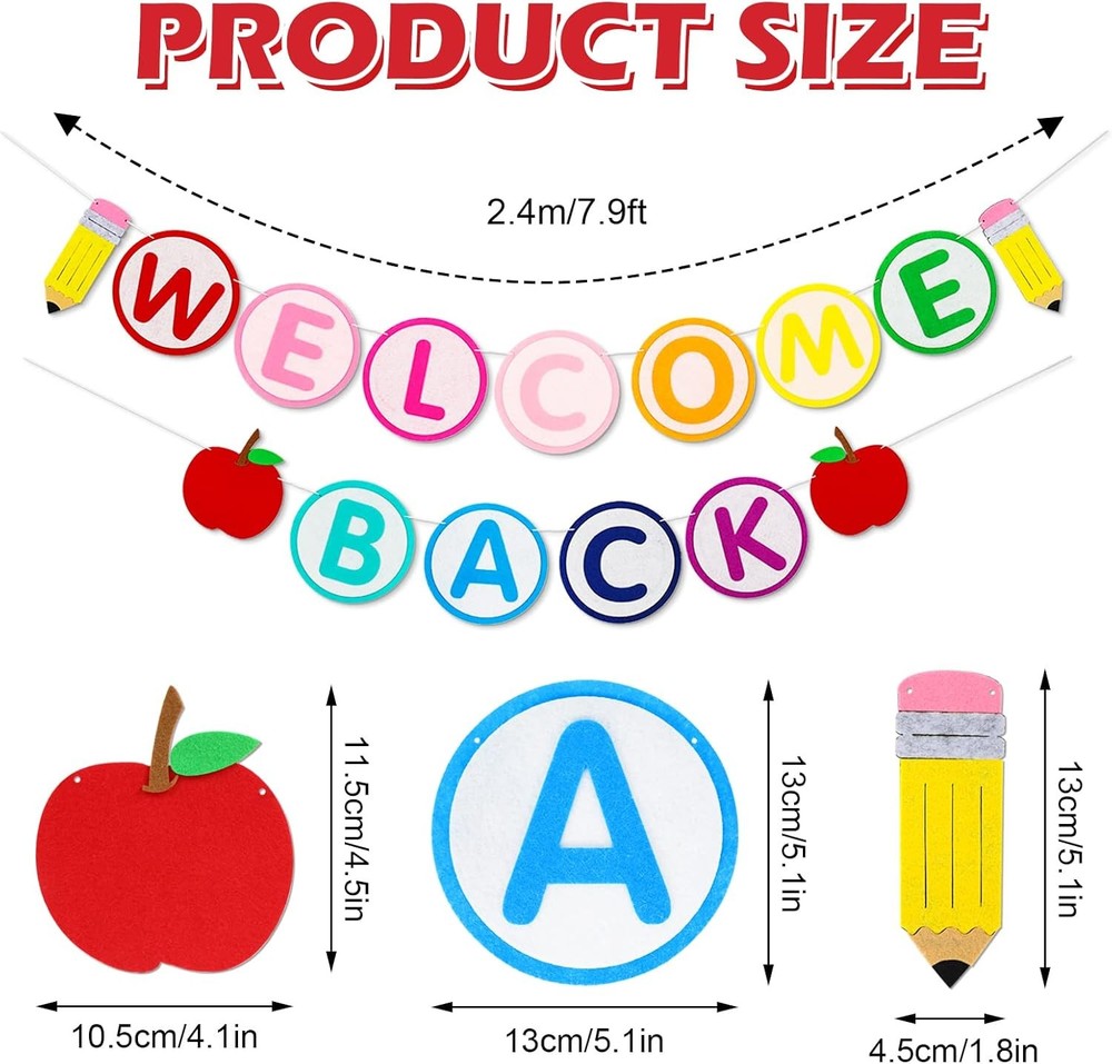 Free eBay listing template designed by dewiso.com Whaline 2Pcs Welcome Back to School Banner Colorful Felt Back to School Garland Apples Pencil Cute No DIY Felt Hanging Banner for First Day of School Classroom Party Decor, 7.9 Feet FREE AND FAST SHIPPING! About this item The Package Include – You will get 2pcs back to school felt banner with apple and pencil shape, also printed with letters welcome back, looks vivid and exquisite, it will be a beautiful decoration to your classroom. Safe Material - Made of premium felt, soft and comfortable to touch, smooth and durable, hard to fade or break, you can have it for next year or give it to friend to make best use of it. Attractive Design - Catering to the back to school theme, combined with apple and pencil, making your decorations stand out from many other parties with their beautiful visual effects. Proper Size - The apple measures about 10.5x11.5cm/4.1x4.5inch, pencil measures about 4.5x13cm/1.8x5.1inch, round letter measures about 13cm/5.1inch and the rope is 2.4m/7.9ft long. Our garland is pre-assembled, convenience for you to use. Wide Applications - Hang this back to school banner over the blackboard or any corner in classroom, over party back drop, add some unique decor to cheer up your important moment. Product We offer a 30-Day Return Policy on items which you are not completely satisfied with. You have the option for a full-refund or an exchange of the item. No returns are available on items shipped outside of the US . Shipping We offer Free Shipping to the US and ship within 2 business days of payment, usually sooner. We use UPS express shipping. That's why your products are usually delivered within 3 days . Contact We try our very best to make sure every customer is completely satisfied. If there's a problem , message us! We're happy to help. 24/7 live chat available.