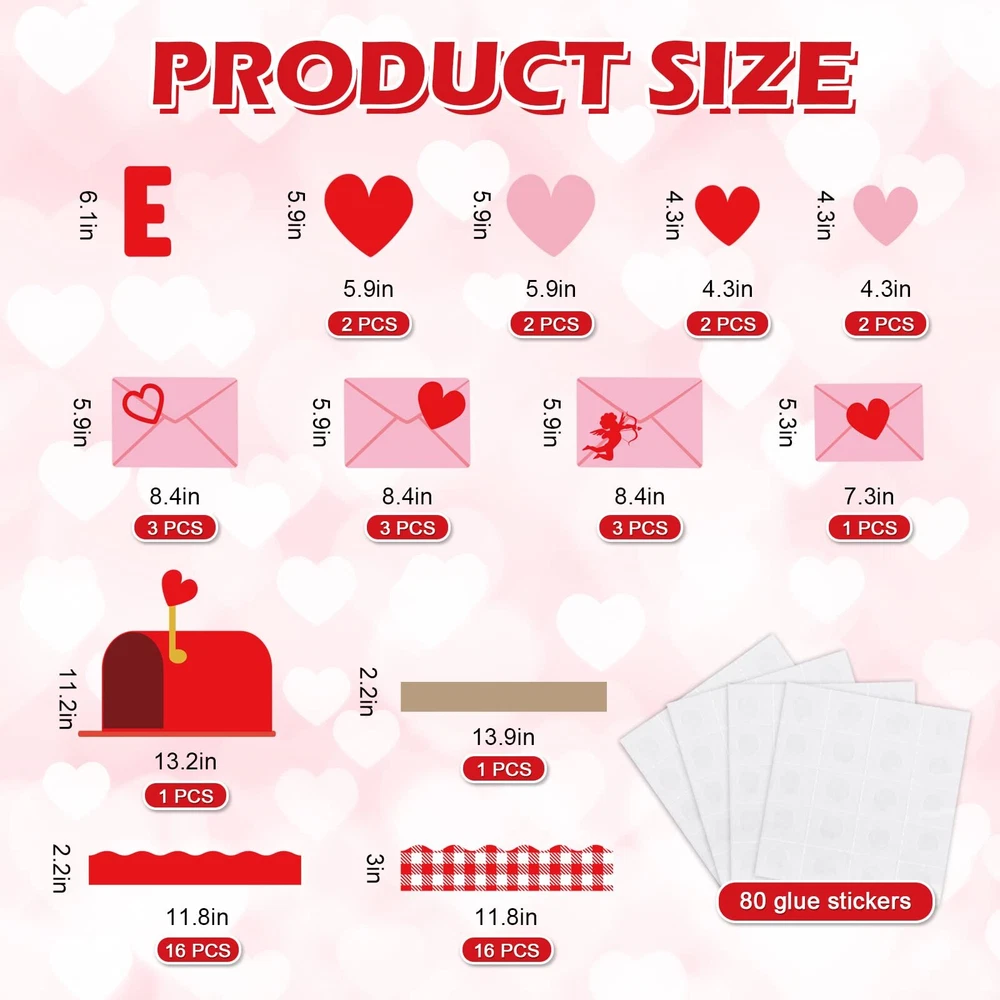 Whaline Valentine's Day Bulletin Board Decoration Love Letter Mailbox Red Pink Heart Envelope Cutouts Plaid Border Trim Valentine Heart Decorative Cutouts for School Classroom Party Decor Features & Benefits: A great set combined with paper cutouts and bulletin board stickers, easy to stick and wonderful for decoration. Designed with popular holiday elements, our bulletin board decoration kit will be atmosphere creator for classroom, home and party, to create more fun and joy. Specifications: Color: red, pink, white Material: paper Package includes: 20 x Valentine's Day Paper Cutout 32 x Bulletin Border Sticker 80 x Glue Point Great Bulletin Board Decor Kit - 34pcs Valentine's Day cutouts and 32pcs bulletin board stickers, 66pcs in total, a large quantity that is sufficient to meet your needs for decoration and crafts. Sweet Design - Taking red and pink as theme colors, our cutouts are designed with hearts, envelopes, mailbox and the words SENDING OUR LOVE, rich varieties offer more imagination space to DIY, come with glue points, very easy to stick. Sizes will be shown in the picture. Bulletin Border Sticker - Designed with plaids or solid color, each design has 16 sheets, with self-adhesive backing, the plaids one is 30 x 7.5cm/11.8 x 3 inch, the red one is 5.5 x 35cm/2.2 x 13.8 inch, long enough for crafts and decoration, and you can cut them into proper size at will, very easy to use. Durable Material - Made of good quality paper, durable and safe, hard to tear off and fade, which can be kept for a long time. Wide Application - Wonderful Valentine's Day, wedding, anniversary decoration for classroom, home, party, office, etc., perfect for bulletin board, blackboard, wall, door, window, mirror, table and other places you want, to create holiday atmosphere. Shipping from the USA All of our products are shipped from the USA, ensuring quick delivery to your destination. Payment We offer the following payment methods: PayPal, credit card, bank transfer, and eBay's secure payment system. Free Shipping & Free Returns Shipping within the USA is FREE. Additionally, any return is absolutely free for you. Risk-Free Purchase You have the option to return an item within 30 days without any justification. We cover the return shipping costs! Fast Shipping We ship immediately upon receipt of payment. Generally, the package is delivered within 2-3 days in the USA. If it takes longer, we will contact you. Quality and Costs Made in Europe, USA, China No customs fees or additional charges Total satisfaction guarantee Invoice with declared VAT available upon request in .pdf format Feedback Your feedback is very important to us. After you pay for your purchase, you will automatically receive positive feedback from us.