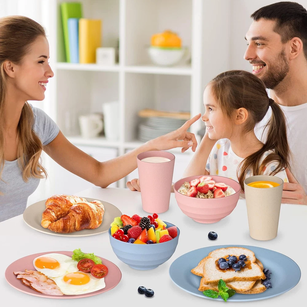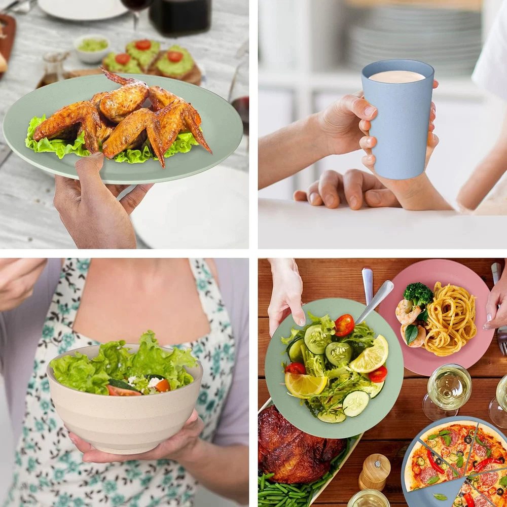 Wheat Straw Dinnerware Sets of 4 - Unbreakable Cups, Camping Plates and Bowls...