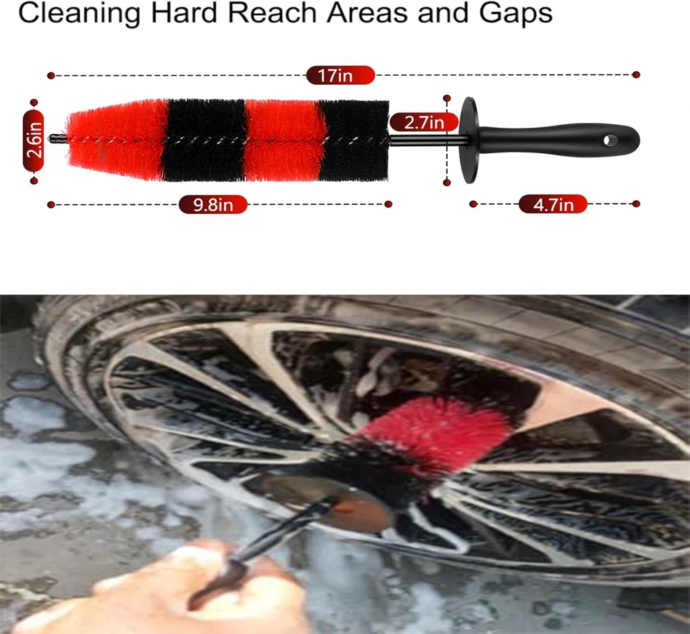 Store New Arrivals Add to Favorite View Feedback Contact Wheel Rim Brush, Soft Bristle Long Car Tire Detailing Washing Tool for Exhaust Tips Engine, Vehicle Motorcycles Auto Truck SUV RV, No Scratches Description Color Red-black Brand Fitosy Specific Uses For Product Cars, trucks, motorcycles, bicycles Product Dimensions 2.6"L x 2.6"W x 17"H Handle Material Plastic Cleaning Hard Reach Areas and Gaps - Our long rim brush is 17" long, perfect for cleaning between the wheel spokes, inside of the wheel, alloy wheel slots and any other tough to reach areas Durable Bristles for Light & Heavy Duty Cleaning - Durable bristles brush can be used for both light & heavy duty cleaning, professional automotive detailers and car care enthusiasts, scratch free, safe for your wheel rims. Warm Tips: Please use the side of the brush to clean your car wheel, please do not use the top of the brush to clean Long bristles wheel brush with 9.8" brush head cleans deep inside the barrel of the wheel, and allows you to quickly clean your wheels and is long enough that you will not bang your knuckles on your wheels. Sturdy & Durable & Ergonomic Design Handle - The handle is made of solid and durable material, which can be used for a long time.Handle that conforms to grip and usage habits,not easily detached Multi-Purpose Use - Cars, trucks, motorcycles, bicycles, boats, wheels, rims, spokes, grills, engine bays, exhaust tips, bumpers, vents, and much more. And the brush can also clean things around the house, such as dryers vent hoses, sinks and other Product Description Fitosy rim detail brush is multipurpose use for wheels, rims, exhaust tips, and motorcycles, with our soft and durable bristles brush. Products Specifications: Brush Material: PP bristles Brush Length: 17 Inches Brush Head Length: 9.8 Inches Why choose us? 1.No need the high-pressure washer, with our wheel brush, you just need one bucket of water and detergent then you can clean your wheel rims by hand and you will see the dirt and dust get off wheels soon. Your favorite car wheels will get glorious quickly. 2.Scratch free! Soft and durable pp bristles will not leave any scratch on your favorite wheel rims and it is water lubrication can easily remove the grime in the whole. 3.Long enough can easily get into detail nooks and gaps where the large brush can not reach, cleans your wheel rim totally. 4.Easy to clean mud, dirt, and brake dust from deep within the barrel of the wheel. 5.The long brush with knuckle guard protects your knuckles from getting hurt while cleaning the wheel interior. 6.Multi-purpose use! Clean a lot of place for auto, motorcycles, home, bathroom and kitchen. Fitosy Wheel Brush Cleaning hard to reach nooks and spots Premium Wheel Brush for Rims The 9.8” brush head help you clean your wheels quickly and clean hard to reach nooks and spots. Durable and soft bristles detail brush designed for professional automotive detailers and car care enthusiasts, scratch free. 17" long rim brush is perfect for cleaning between the wheel spokes, inside of the wheel and any other tough to reach areas. Easily agitated and remove brake dust, dirt, grease, and grime from wheels and rims for a show car look. Suit for cleaning cars, trucks, motorcycles, bicycles, boats, wheels, rims, spokes, grills, engine bays, exhaust tips, bumpers, vents, and much more. Protect Your Hand Rubber knuckle guard protects your knuckles from getting hurt while cleaning the deep rims. Scratch Free Rubber Brush Tip on the top of the brush, keep your car rims from scratching when cleaning inside rims. Easy Reach Wheel and Rim Nooks and Spots This brush is great for cleaning between wheel spokes, the area between the rotor and the inside of the wheel, and any other tough to reach areas. Widely Uses Cars, trucks, motorcycles, bicycles, boats, wheels, rims, spokes, grills, engine bays, exhaust tips, bumpers, vents, and much more. And the brush can also clean things around the house, such as dryers vent hoses, sinks and other. ABOUT US We offer the best prices around on high quality products. Our E-store includes media such as books, movies, music and games while offering electronics, toys, sporting apparel, clothing, tools, general home, garden items and more. SHIPPING We are always working hard to ensure your package arrives as soon as possible. Please understand that some factors like weather, high postal traffic, and the performance of shipping companies are outside of our control. We offer free shipping to the lower 48 states and ship within 2 business days of payment, usually sooner. We do not accept P.O. Boxes. Please provide a physical address. RETURNS We offer a 30-Day Return Policy on items which you are not completely satisfied with. You have the option for a full-refund or an exchange of the item. No returns are available on items shipped outside of the USA. PAYMENT We accept PayPal. CONTACT US This page content is yet to come Please ad us to your favorite seller and visit again later Thank You CUSTOMER SATISFACTION We try our very best to make sure every customer is completely satisfied. If there's a problem, message us! We're happy to help.