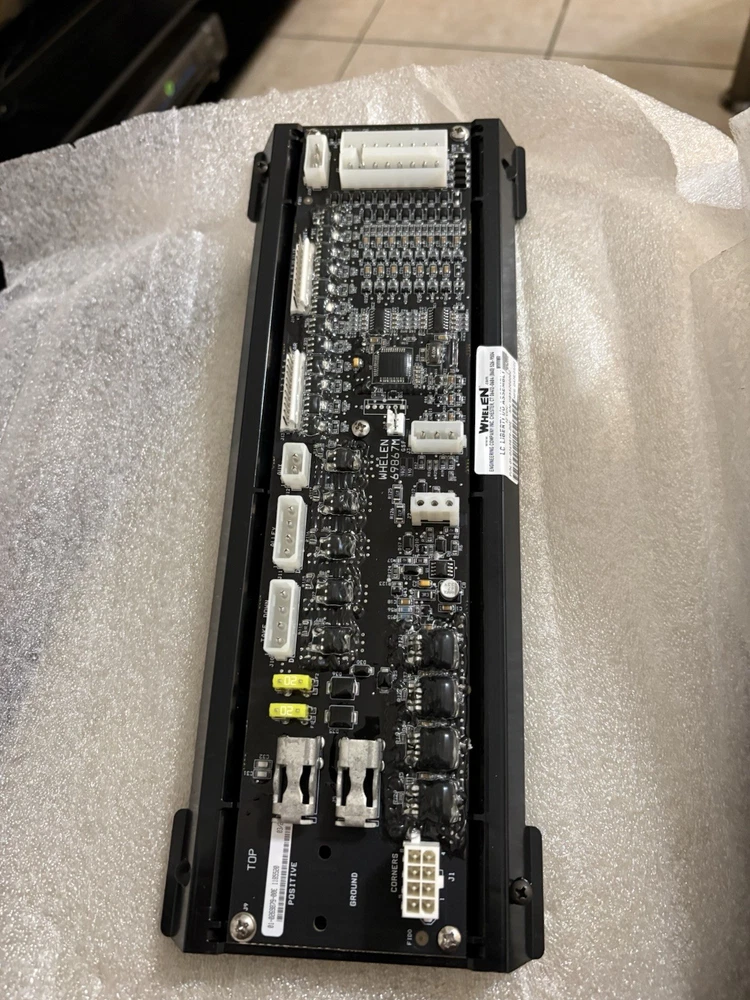 This listing is for a Whelen LC Liberty I/O Assembly, 12VDC, part number 01-0269879-00E, manufactured in the USA. Unit is new surplus, never installed, and was stored in protective packaging. This module fits Whelen Liberty Series lightbars and provides power distribution and control for multiple LED modules through WeCan-compatible connections. All connectors, fuses, and components are intact and in excellent condition. Serial number may vary. Sold as surplus for training, refurbishment, or replacement purposes only.