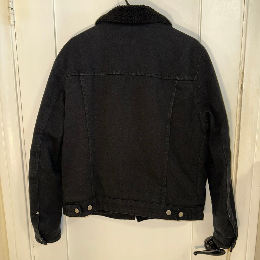 Pre-Owned, good condition with some signs of wear. Size Medium. We introduced our Trucker jacket with lightweight and durable twill for your dressier days. Designed with a cropped structure and workwear look, this utility outerwear makes a versatile pairing for just about any outfit in your closet. Features: Twill Hook and loop closure Long sleeves Fur collar Two buttoned flap pockets Two regular side pockets Two inside pockets on the left One horizontal pockets on the right Fully lined with fur to keep you warm Adjustable snap at back Fabric and Care: Outer Shell - 100% Cotton Body Lining - 100% Fur Acrylic Lining - 100% Polyester Fill - 100% Polyester Professional Clean Only.