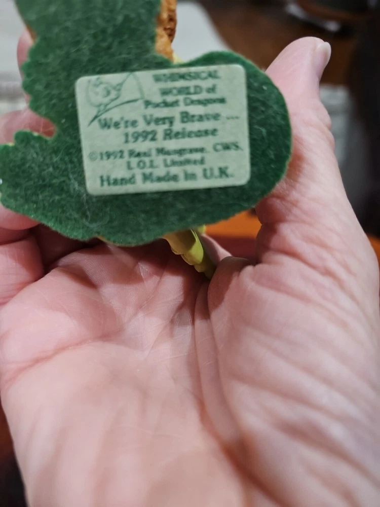 This limited edition figurine from the Whimsical World of Pocket Dragons collection is a must-have for any fantasy art enthusiast. Created by Real Musgrave, the dragon figurine is made of high-quality resin and features intricate details that bring the character to life. The piece is titled "We're Very Brave..." and was manufactured in 1992, making it a rare find for collectors. The dragon figurine is part of the Pocket Dragons collection and is perfect for display in any room of the house. The piece is categorized under Collectibles, Decorative Collectibles, and Sculptures & Figurines, making it a versatile addition to any collection. Don't miss out on the opportunity to own this unique and rare figurine.